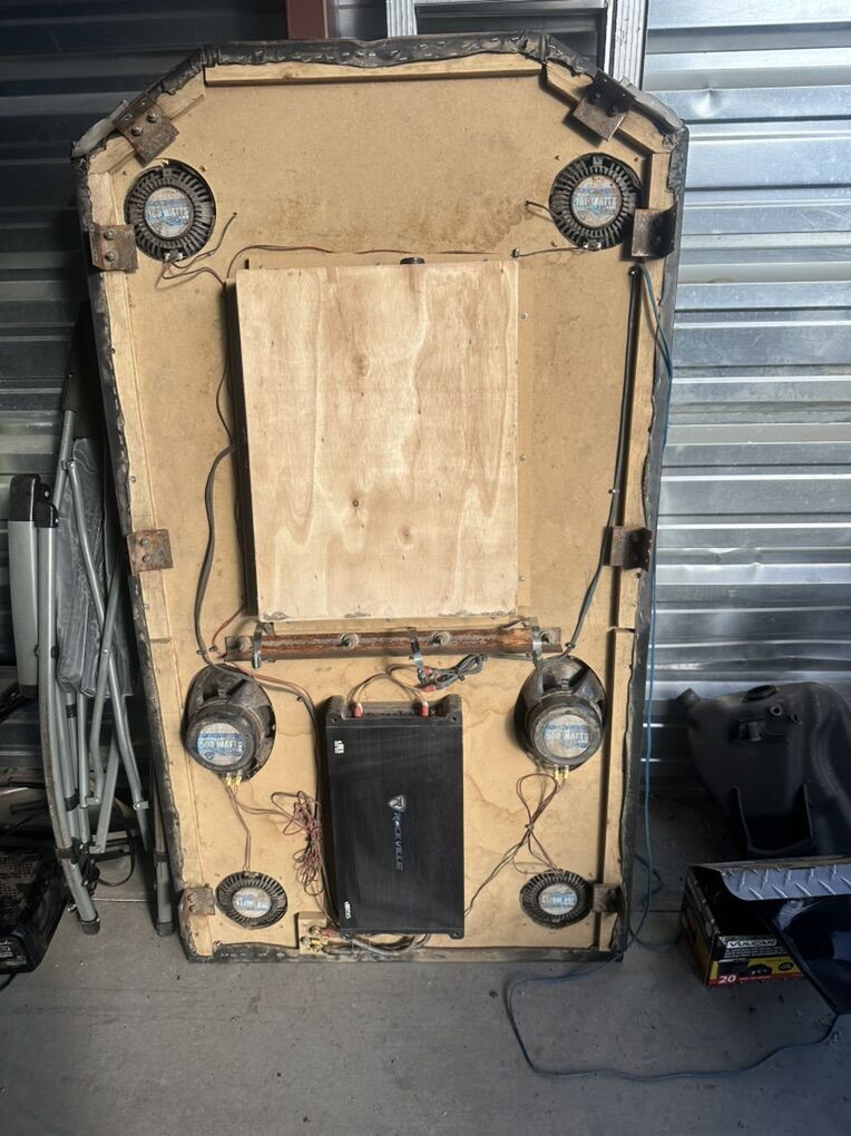 Really nice custom built stereo system that bolt in a stock roll cage. It all set up and has everything including the wiring for it. I changed my cage to a sand works and it wouldn’t work. Sounds amazing.