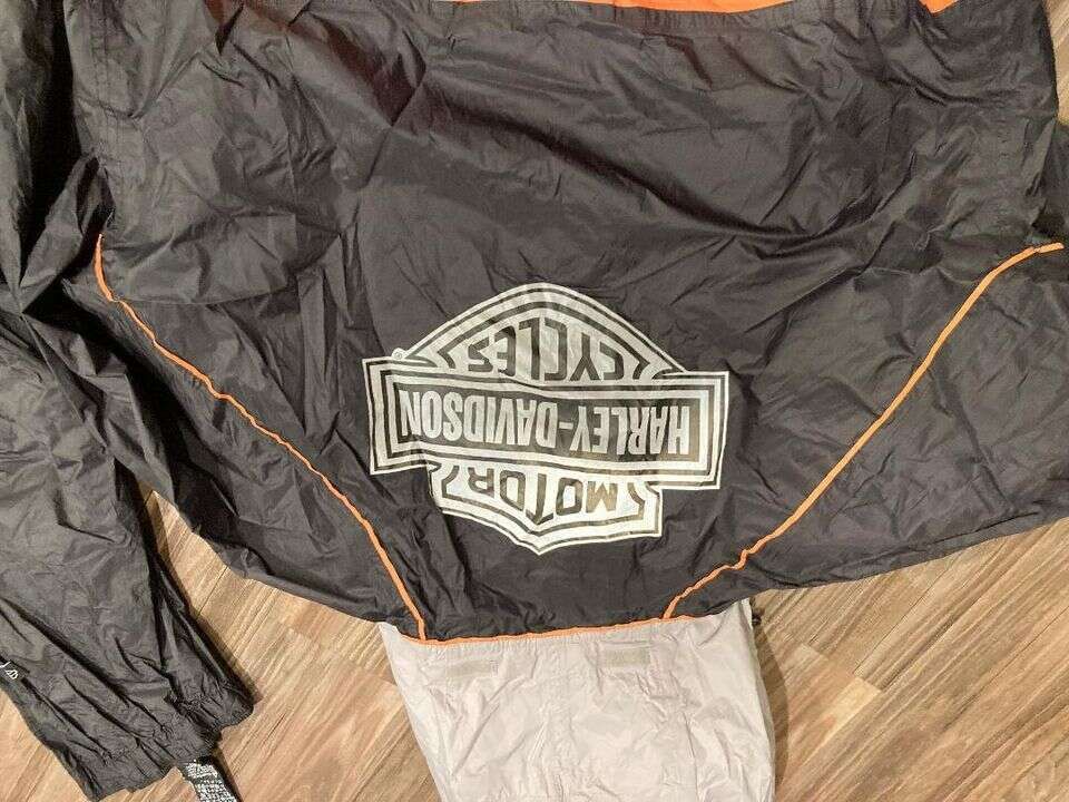 PayPalMen's Harley Davidson, two piece, waterproof liner, jacket and pant. Medium or small. The jacket is a small fits snug and is actually insanely simple and cool solid black all the way around. Black Switchback. All three items are in new condition from a non-smoker pet pet free home. Three items. $129