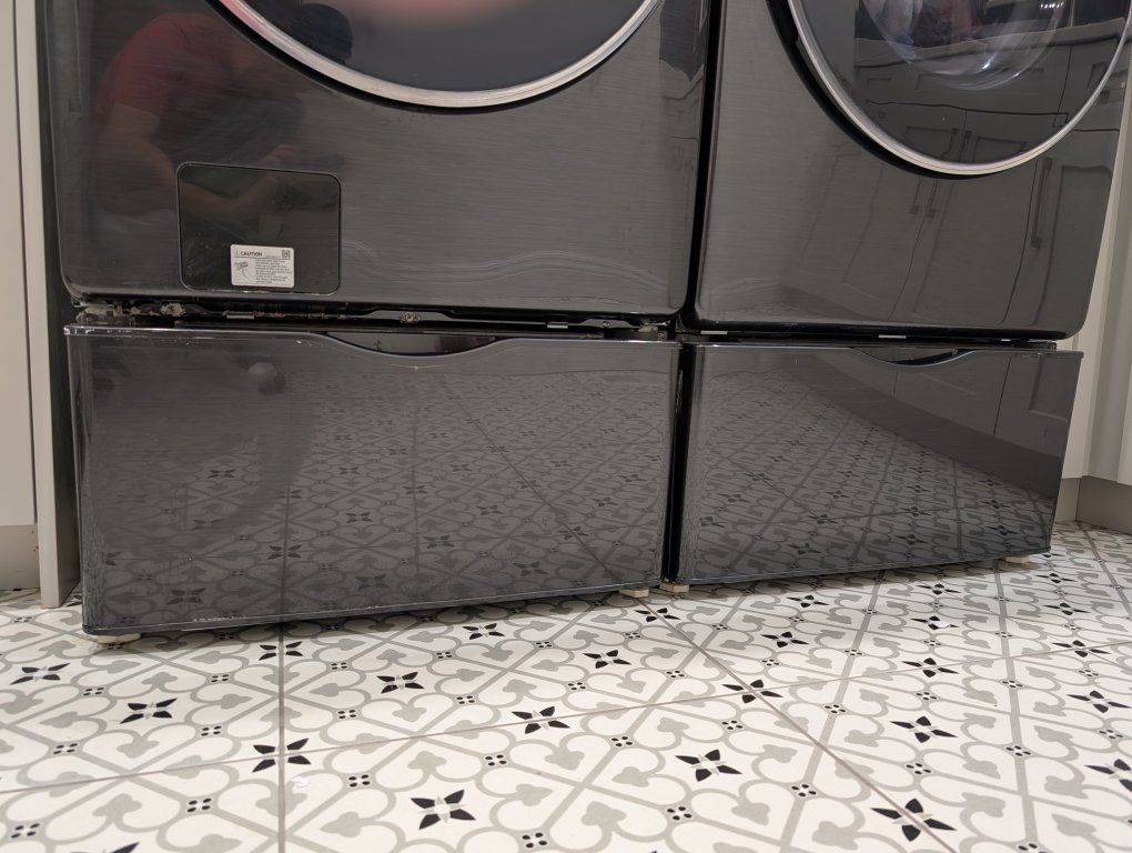 Dryer works perfectly and dries fast. Includes matching pedestal drawer.
