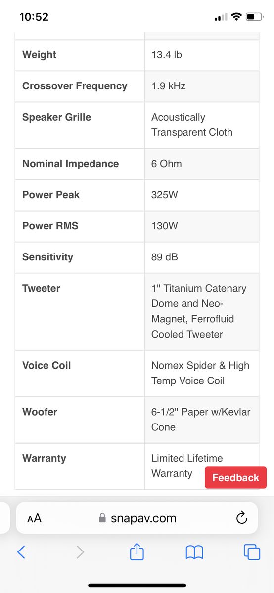 VenmoEpisode bookshelf speaker Good shape, slight scuffs Sounds excellent 7.5”x13.3”x9.9” 6.5” woofer Full specs in pictures