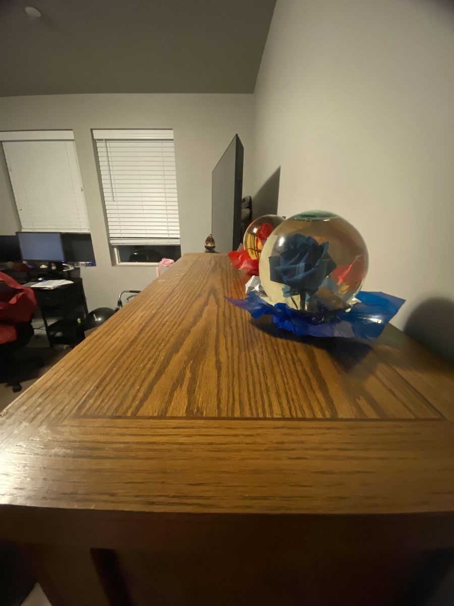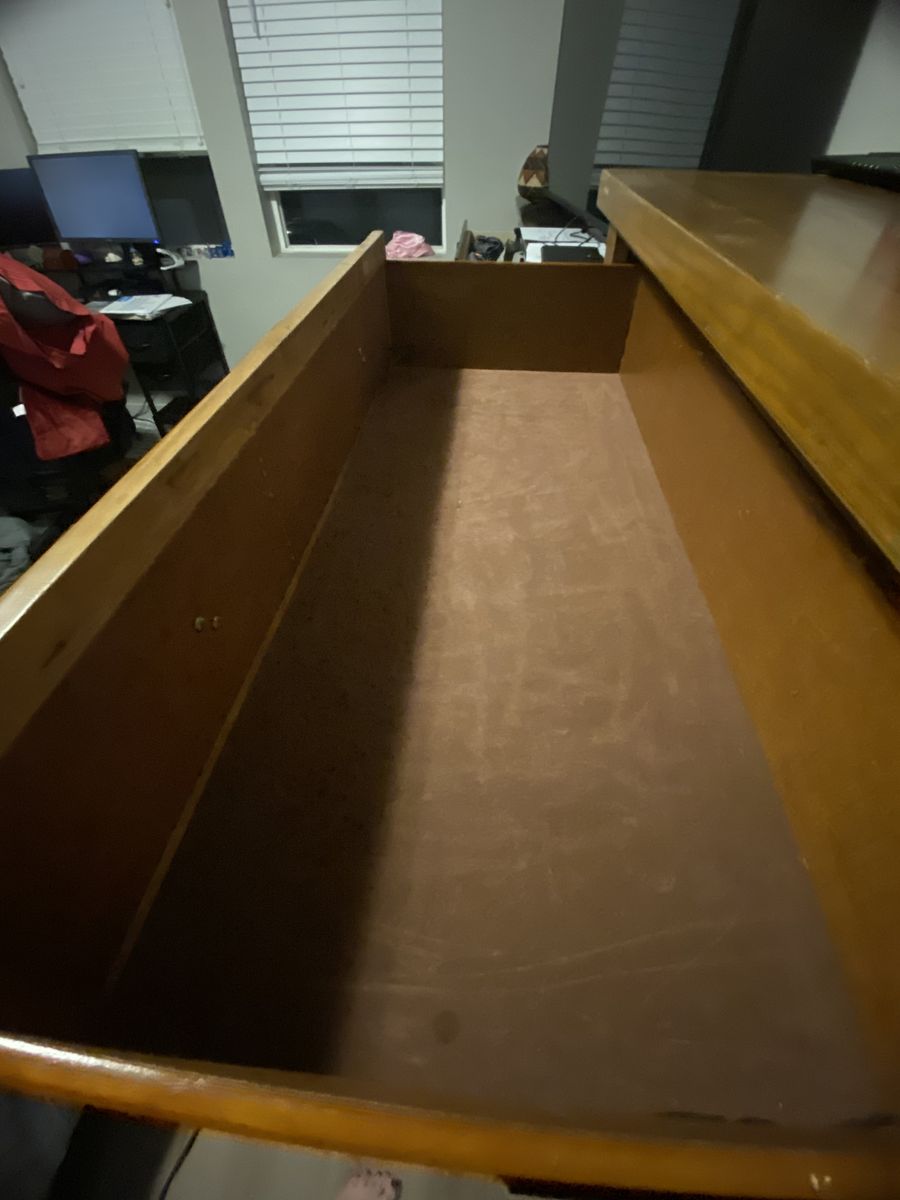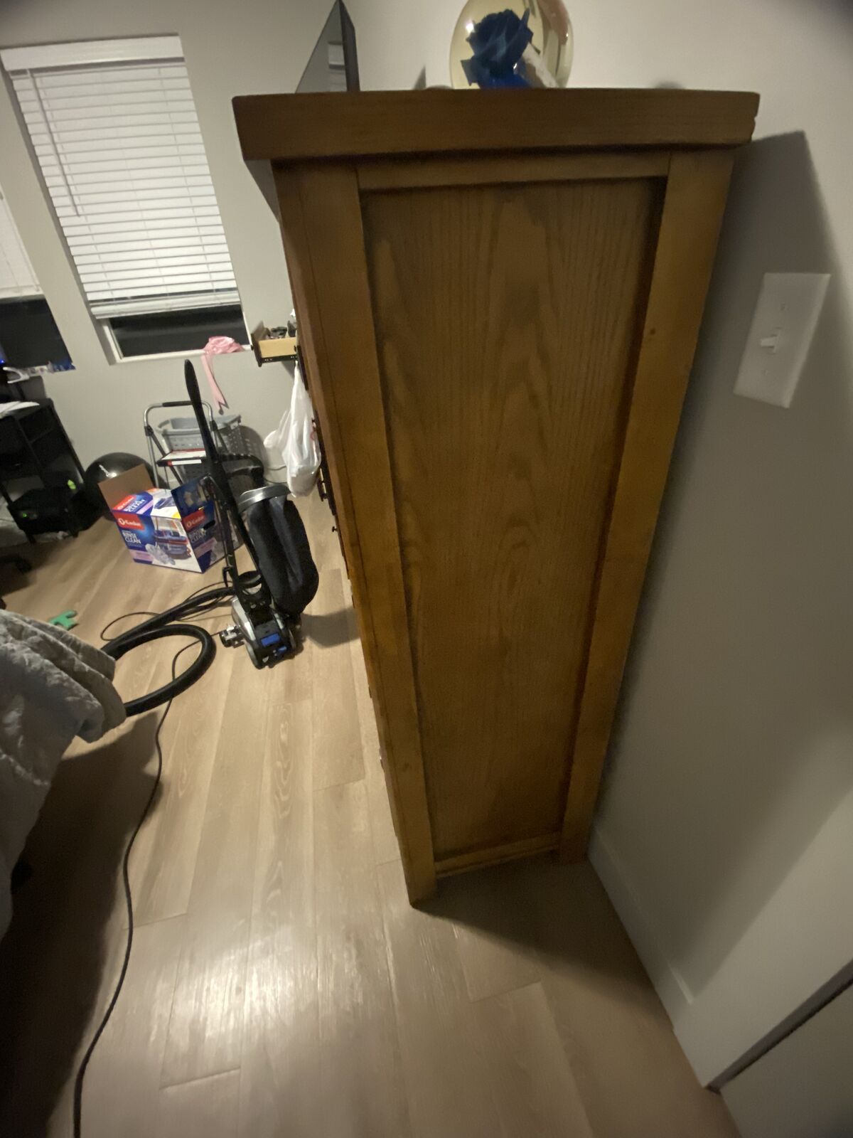 Beautiful solid wood dresser in great condition. Warm medium-brown finish with black hardware and a clean, classic design.