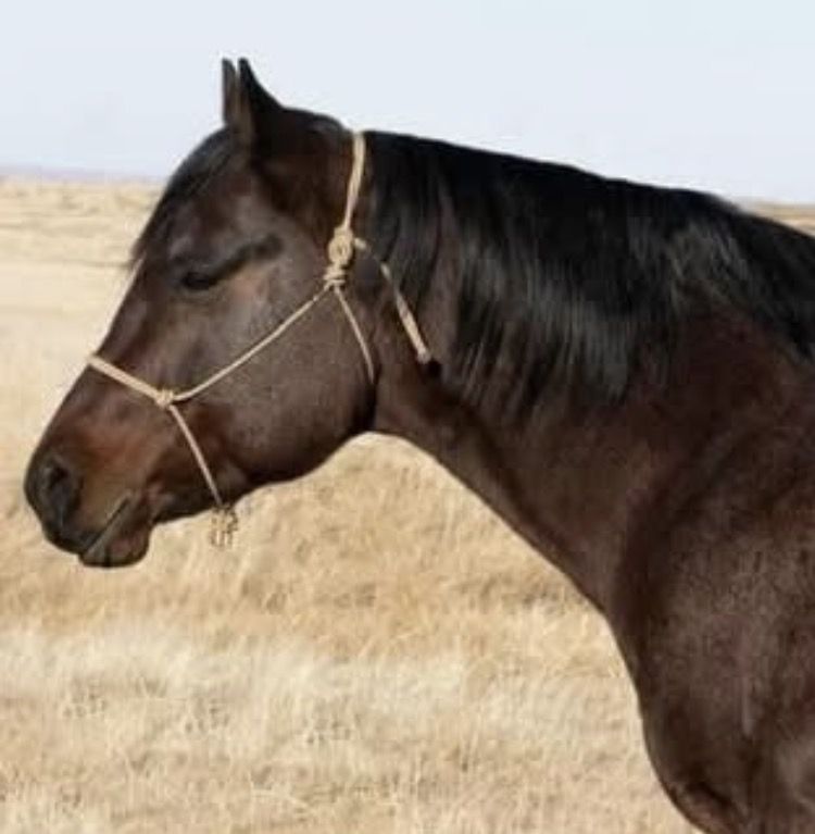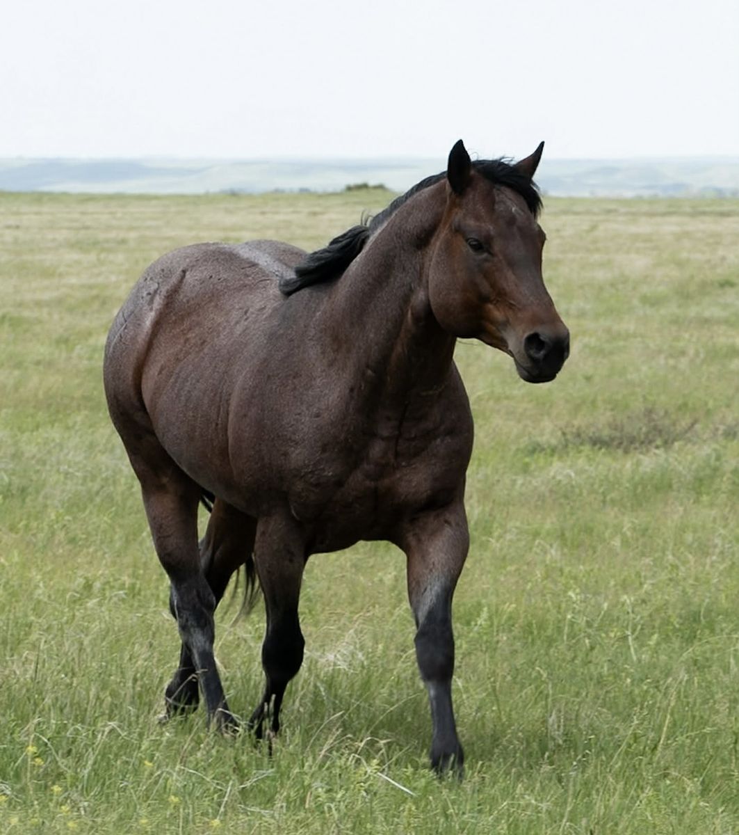 NUMBER NINE WIRE is a 2017 bay roan stallion that has been ranched on, ridden in a feedlot, and started as a tie-down horse.