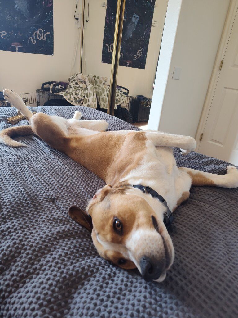 I've had her for about a week now as we rescued her from a shelter, she's been an incredible dog but I have two small senior dogs that were previously attacked by a different dog about her size almost a year ago. I thought that they wouldn't mind Darla because she's absolutely the sweetest thing, but she doesn't know how to play gently with such small dogs yet, and they have trouble correcting her appropriately, so it ends up being stressful for them and upsetting for her because she thinks she's done something wrong. she would do absolutely fine with other small dogs, but the well-being of my little seniors comes first because I've had them for so long. so unfortunately we're looking to rehome her, if it was any other circumstance I'd absolutely keep her in a heartbeat.