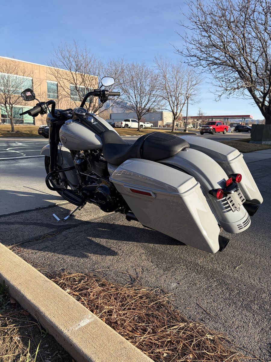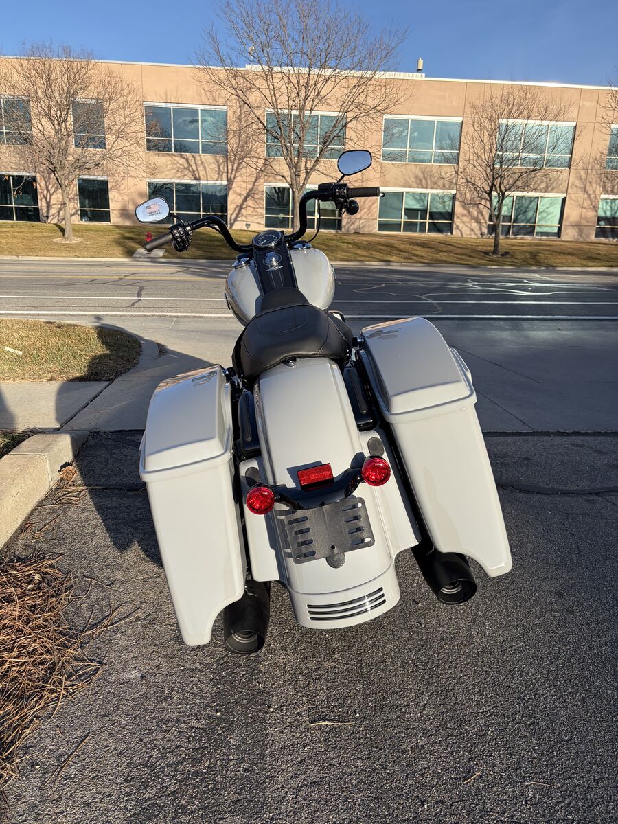 Reign in black. Drenched in black from headlamp to exhaust tips, the 2025 Road King Special has custom bagger style with touring comfort and capability. Its fairing-free design, mini “ape hanger” handlebars, Milwaukee-Eight 114 V-twin engine, and subtly integrated tech ensure you get the most out of every ride.