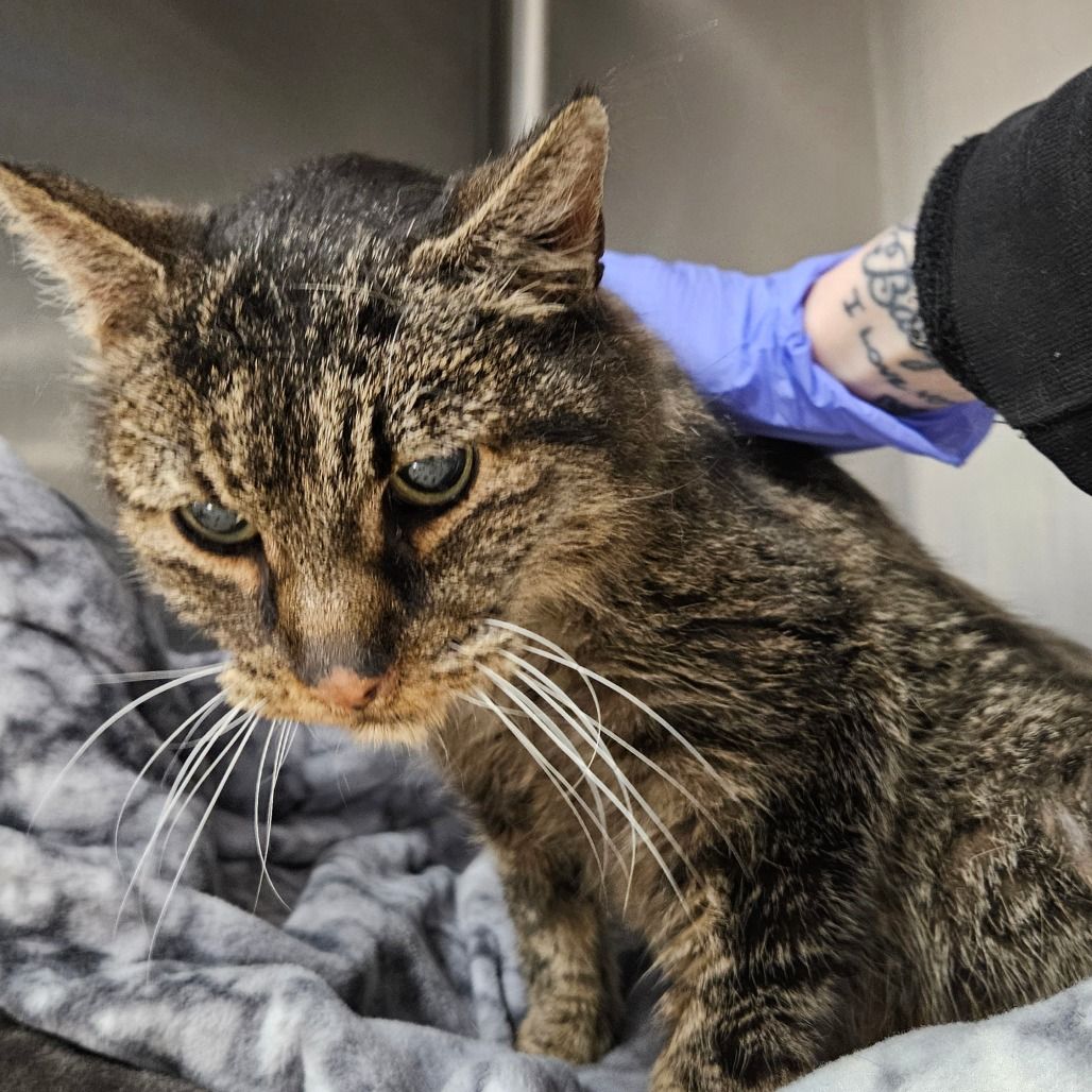 Meet Hubert, a handsome 14-year-old brown tabby with the gentlest soul and so much love to give. Though he is blind and declawed, Hubert navigates his world beautifully once he learns his surroundings. He relies on routine and familiarity, and in return he offers the sweetest companionship. The moment he senses you nearby, his soft, steady purr lets you know you are everything to him. Hubert is incredibly affectionate and happiest when he’s curled up beside his person, soaking up head rubs and quiet moments together. He would thrive in a calm, stable indoor home where furniture stays mostly in place and soft surfaces keep him comfortable. A peaceful environment helps him feel safe, confident, and ready to share his heart. He is currently on prescription kidney food and doing well on his special diet, which will need to be continued to support his health. What Hubert truly needs, though, is someone who sees how special he is — a kind heart, a warm lap, and a forever promise. Senior cats love in the purest, deepest way, and Hubert is just waiting to give that love to someone who will cherish him as much as he’ll cherish them!