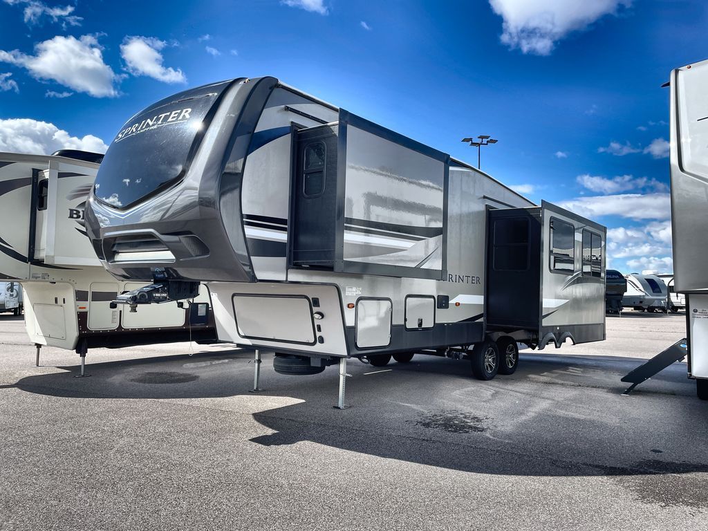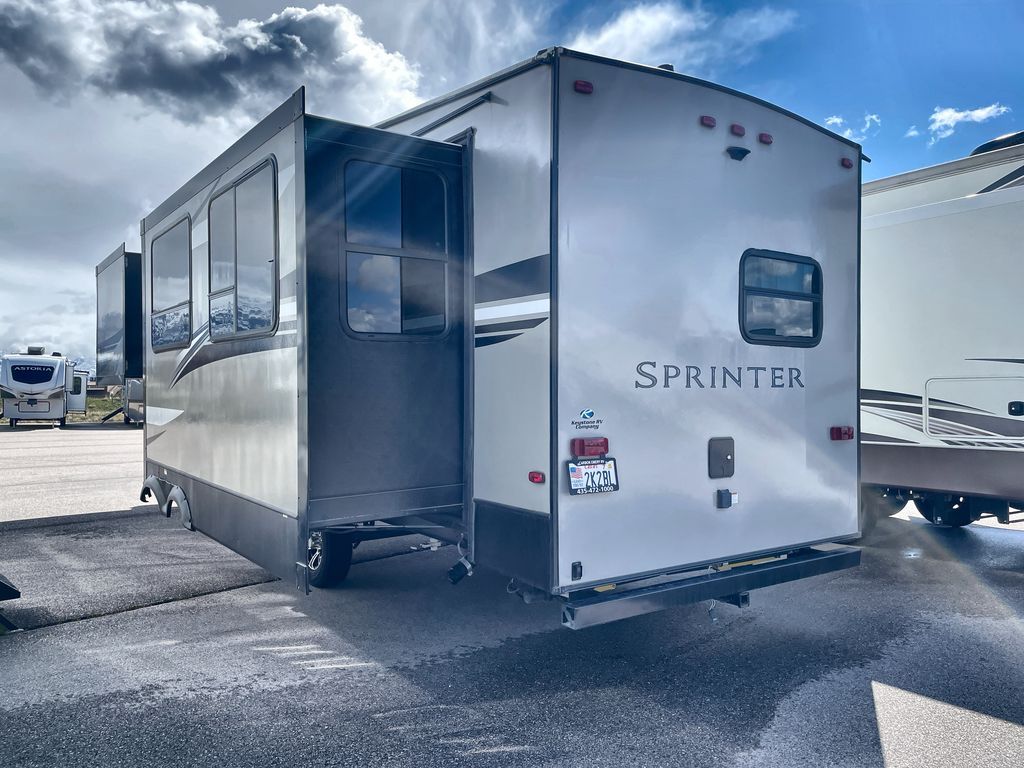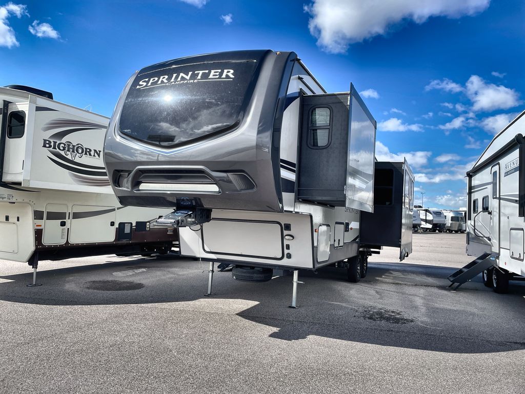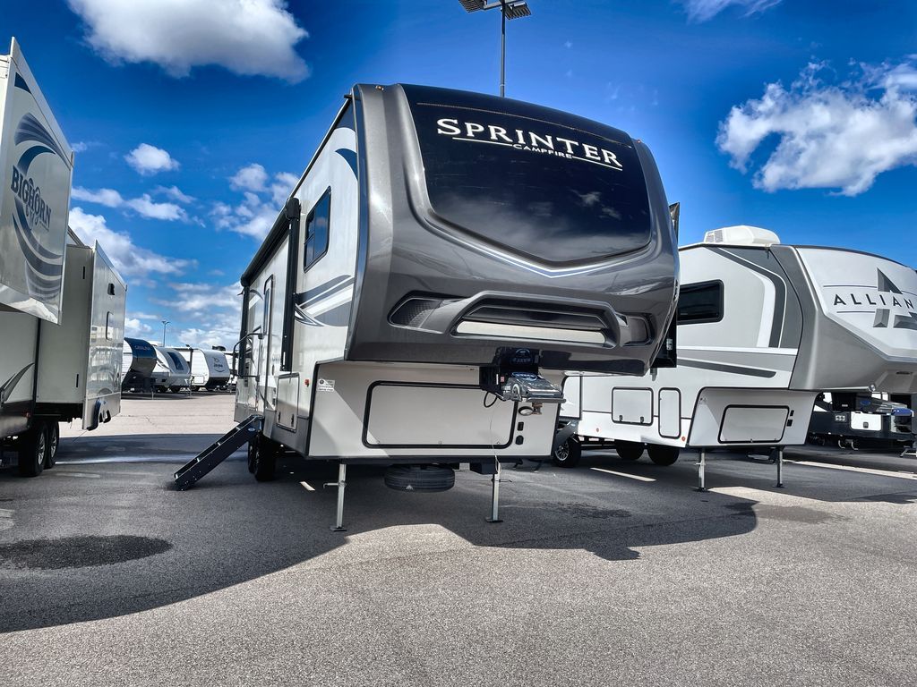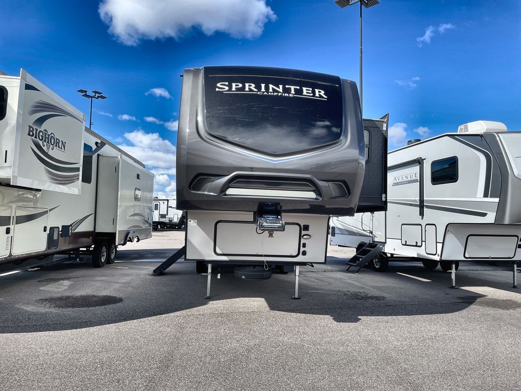 Redefine your camping experience with a Keystone Sprinter Campfire Edition fifth wheel. You are sure to appreciate the elite advantages such as the large picture window, the in-floor heat ducts, the exclusive color-coded wiring, and the KEYTV cable and satellite hook-up which offers a single point of control for your feeds. You will also find interior comforts such as crown molding cabinetry, a large stainless steel kitchen sink, LED interior lighting, and stainless steel appliances. Each model is also prepped for solar power, a backup camera, and WiFi. Make camping easy by choosing your favorite Sprinter Campfire Edition model today!