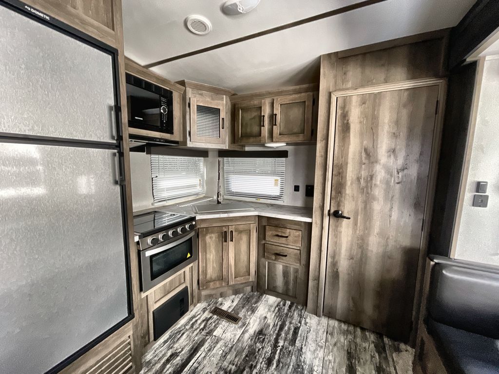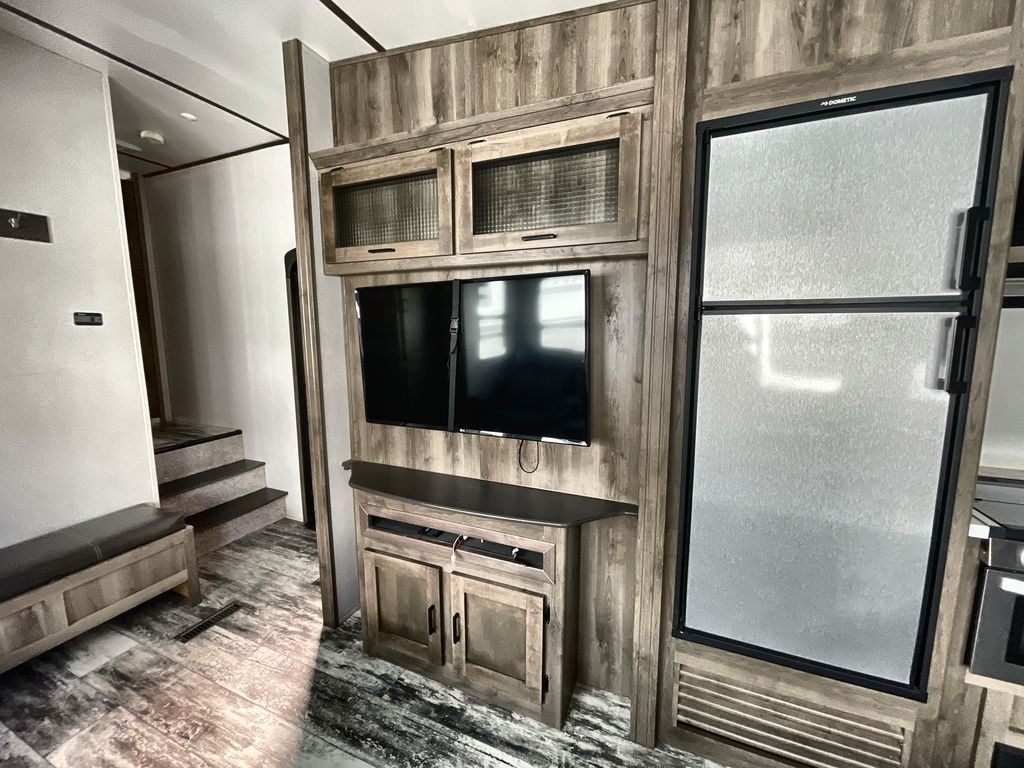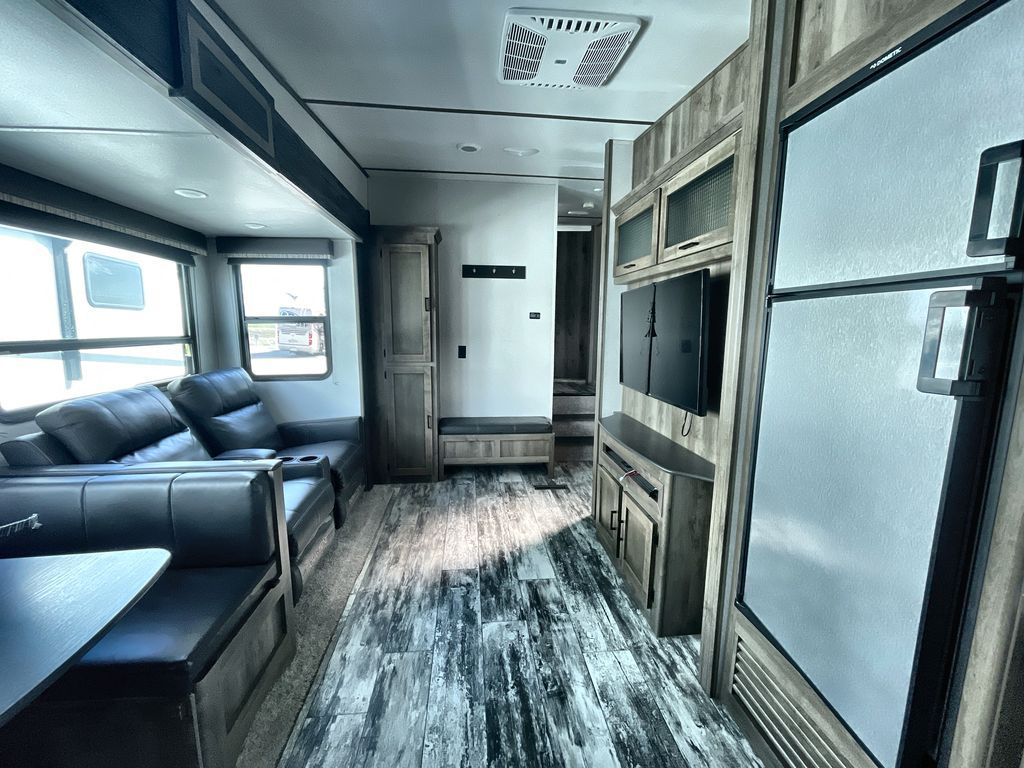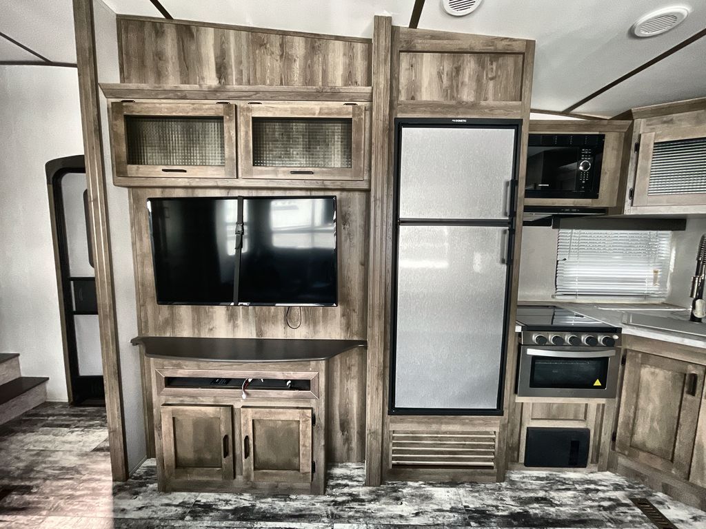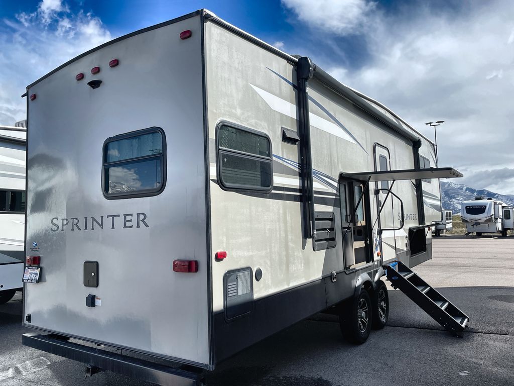 Redefine your camping experience with a Keystone Sprinter Campfire Edition fifth wheel. You are sure to appreciate the elite advantages such as the large picture window, the in-floor heat ducts, the exclusive color-coded wiring, and the KEYTV cable and satellite hook-up which offers a single point of control for your feeds. You will also find interior comforts such as crown molding cabinetry, a large stainless steel kitchen sink, LED interior lighting, and stainless steel appliances. Each model is also prepped for solar power, a backup camera, and WiFi. Make camping easy by choosing your favorite Sprinter Campfire Edition model today!