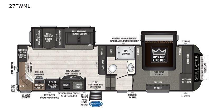 Keystone Sprinter Campfire Edition fifth wheel 27FWML highlights: