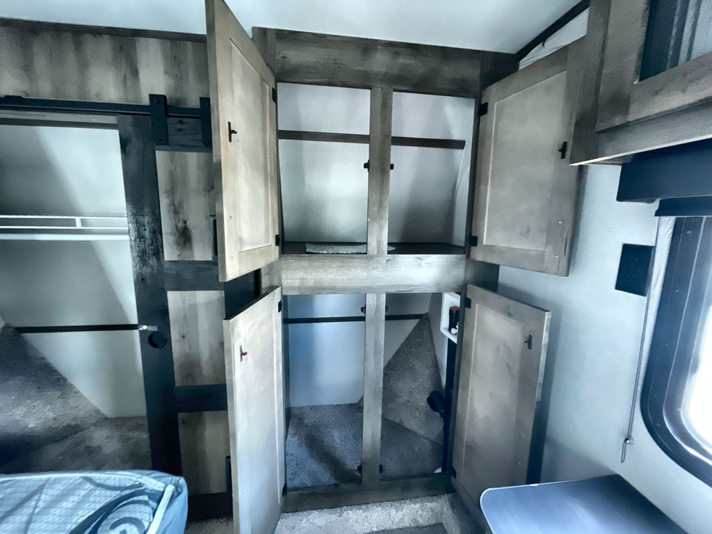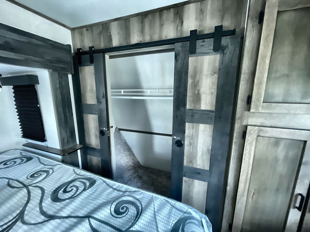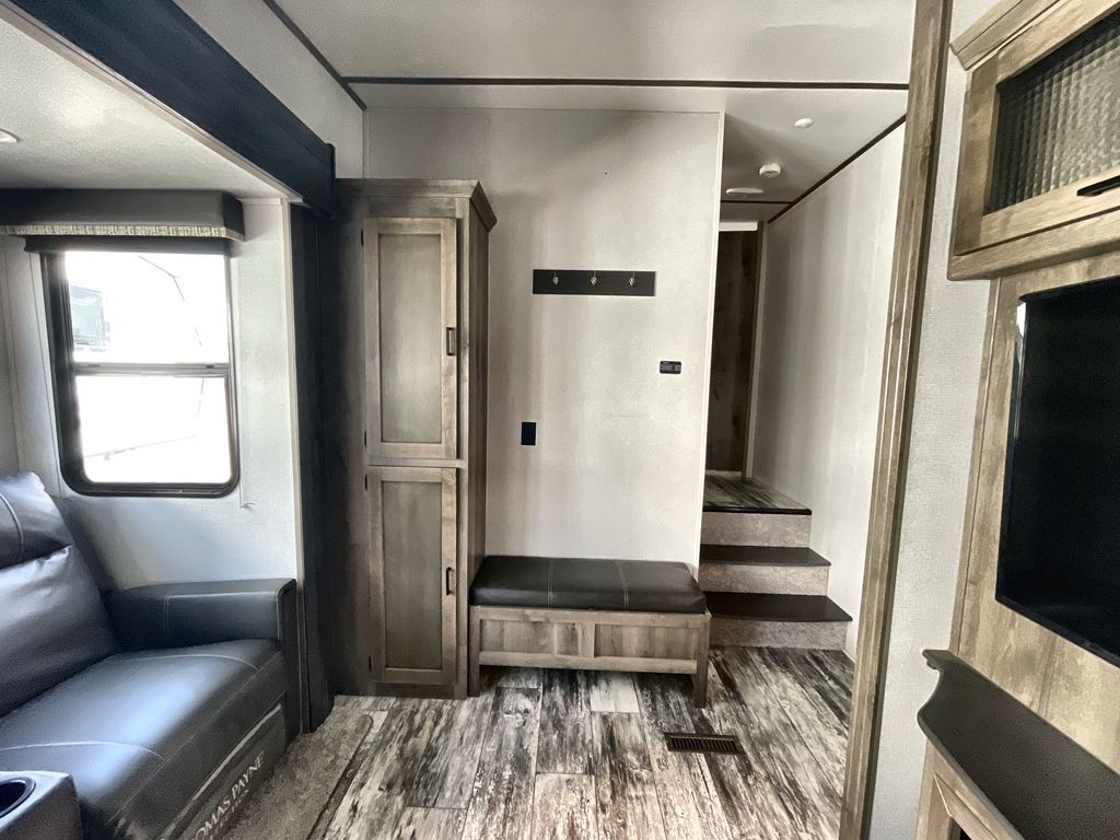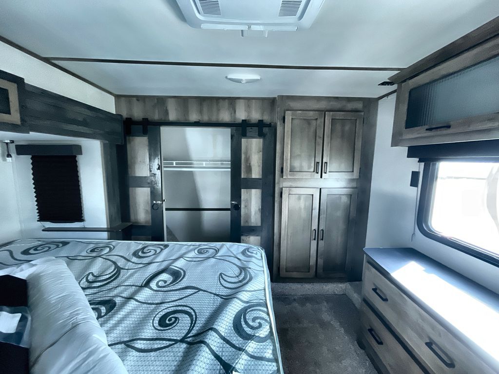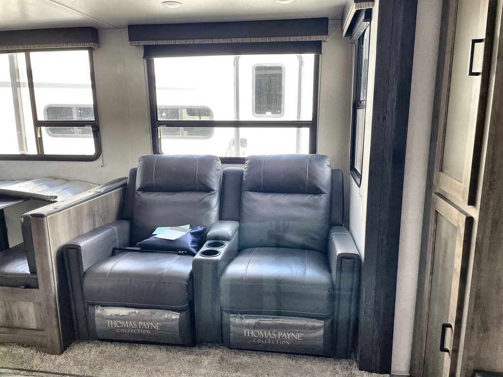 Load up and head out to your local state park in this Sprinter Campfire Edition fifth wheel! You can set up the two slides to enjoy extra floor space, and there is plenty of storage in this model with the floor-to-ceiling pantry, the linen cabinet in the full bathroom, and the bedroom's full-width wardrobe. You can even add an optional washer/dryer to the closet too. Now imagine relaxing outside under the awning while using the outdoor convenience center and the bottle opener/leash holder. If you enjoy more inside time, turn on the 40" LED HDTV and relax on the full-reclining theater seating. The rear kitchen includes everything you will need to stay fed such as a range with glass top, a microwave, a large kitchen sink, and plenty of counter space. Take a look to see what else you will love about this unit!