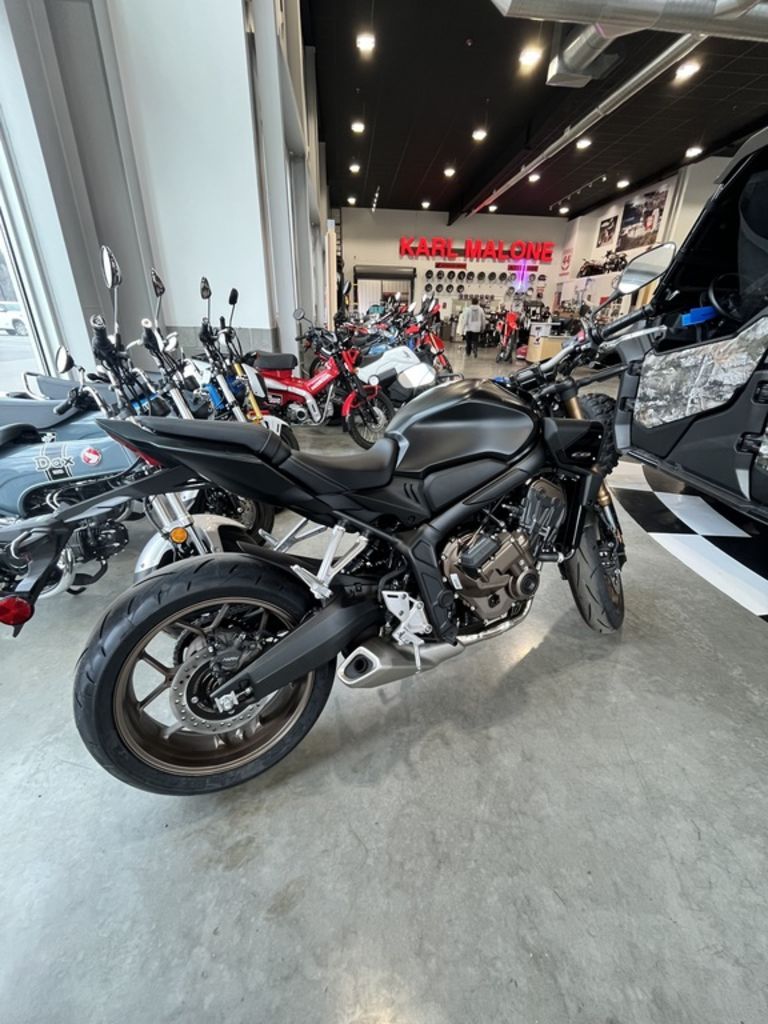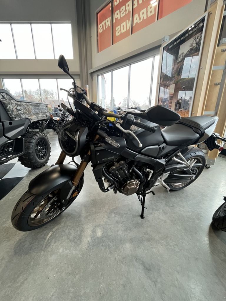 2026 Honda® CB650R E-Clutch Own the roads with ease Sport performance meets streetfighter attitude with everyday ease. The 2026 CB650R is here with a reduced MSRP. No corners cut, no changes to the bike, we simply lowered the price so you can chase the thrill with a little more cash in your wallet. You still get the same high-revving inline-four, responsive exposed chassis, and Honda E-Clutch for smooth starts and seamless shifts, plus a new Matte Black Metallic color. All the performance, all the styling, now smarter priced with no compromise. Features may include: Exhaust system The exhaust plays a crucial role in quieting the engine while maintaining power, optimizing engine performance, and enhancing the bike's aesthetic. The CB's four-into-one system excels in all aspects, producing that beautiful signature inline-four sound. Unique engine tuning Specially tuned valve timing, combined with the piston design, enhances power and torque across the rpm range, making it effective for both city riding and canyon carving. Tuned intake The twin-duct intake design is engineered to ram cool, dense air into the airbox, increasing horsepower. Showa SFF-BP fork Precision handling demands a top-tier front suspension system. The Showa Separate Function Front Fork Big Piston (SFF-BP) unit is a masterpiece of reduced weight, enhanced rigidity, and superior performance. Radial-mount front brakes Featuring large 310mm dual discs gripped by radial-mounted four-piston calipers, the bike delivers premium stopping power that's linear and easy to modulate. 4.1-gallon fuel tank This versatile bike is equipped with a generous 4.1-gallon gas tank, offering excellent range and remarkable fuel efficiency. Six-speed transmission Smooth, nearly seamless shifts and gear ratios to match your riding style—the six-speed gearbox with E-Clutch provides a next-level riding experience and stall-free control, characteristics that make this Honda so much fun to ride. Trapezoidal body layout Although it might sound like a mouthful, it simply means that this bike has great ergonomics, ensuring a comfortable ride without sacrificing any style. All LED lighting Compared to the previous generation, this bike gets all-LED lighting throughout for increased visibility, including a restyled slanted headlight and an updated taillight that tucks seamlessly into the seat cowl.