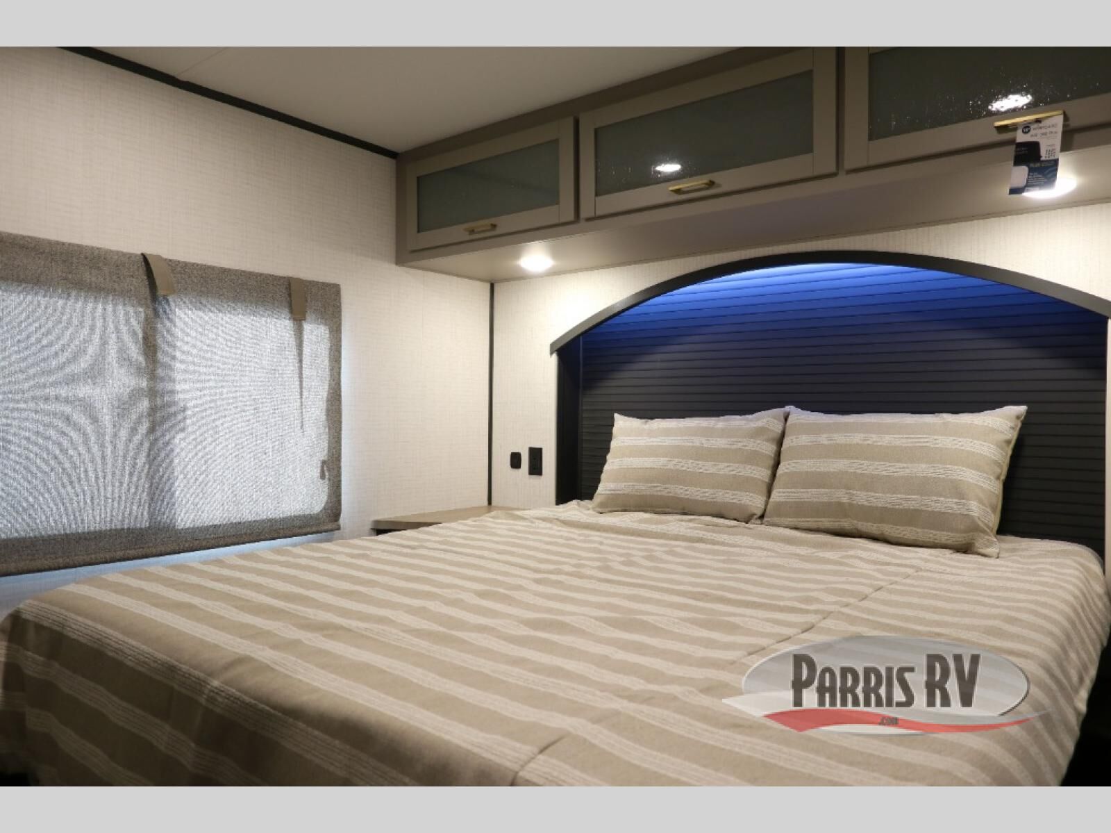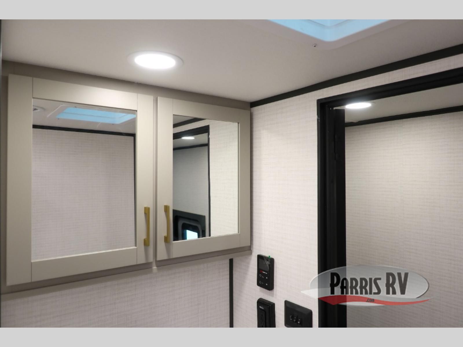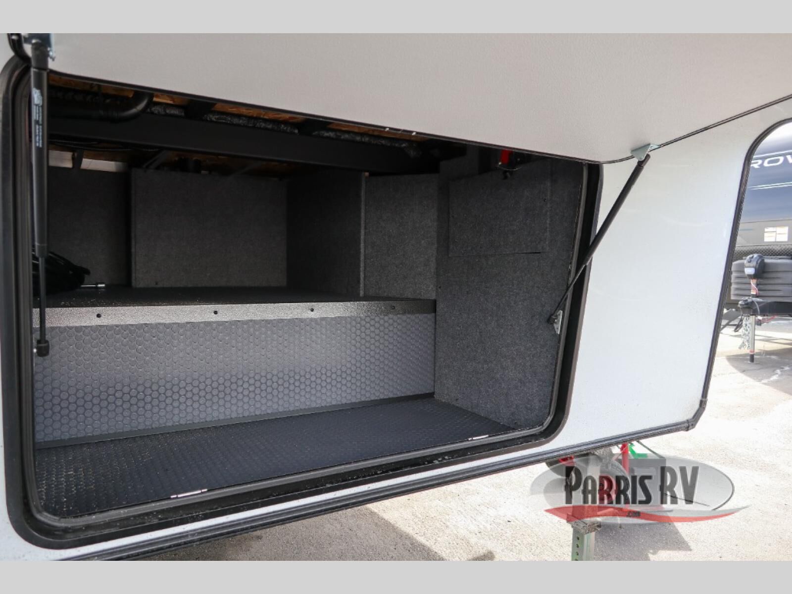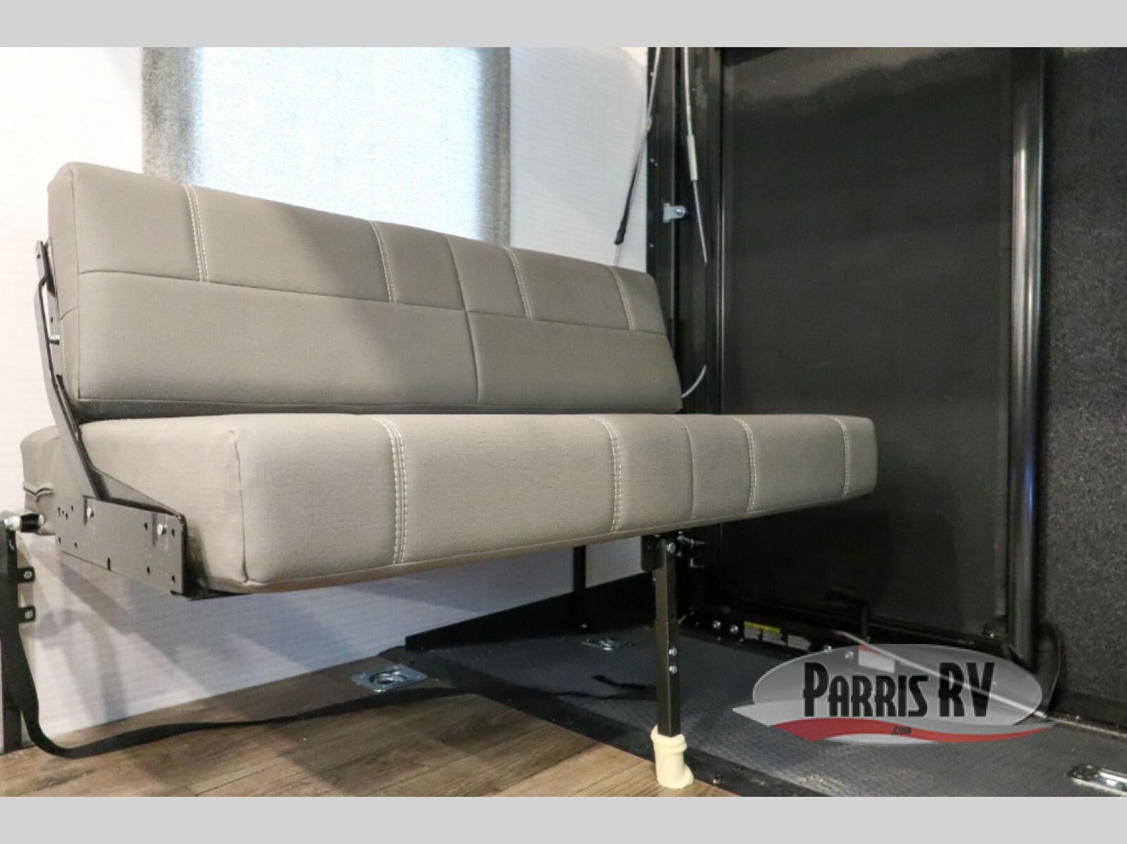 This toy hauler includes everything you need while at the campground. A front private bedroom includes an RV queen bed, dual nightstands and wardrobes plus a third wardrobe to keep your space tidy. The full bath will let you freshen up each day, and there is a convenient medicine cabinet to keep first aid items on hand. A three burner cooktop and microwave oven will be perfect to cook meals with, and there are dual gaucho sofas with a removable dinette table to dine at. Your guests can sleep here at night, along with the queen-size Euro lift bed above!