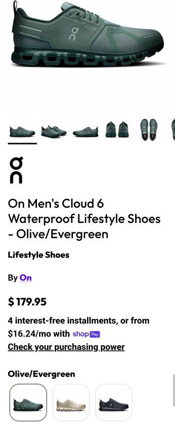 Stay dry, light, and ready for anything in the On Men's Cloud 6 Waterproof in Olive/Evergreen. Designed to tackle wet weather with ease, this Swiss-engineered sneaker blends all-weather protection with Cloud-level comfort—perfect for city commutes, travel, or everyday wear in unpredictable conditions.