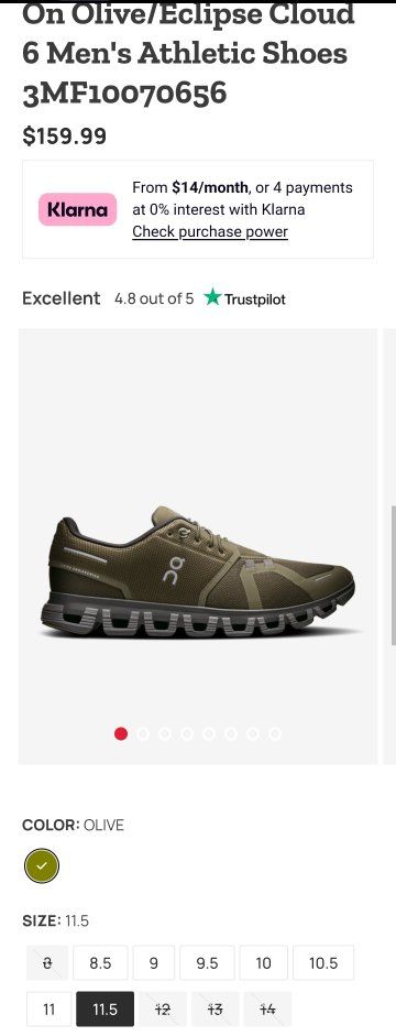 NEW On Men's Cloud 6 Waterproof Lifestyle Shoes - Olive/Evergreen, without BOX.