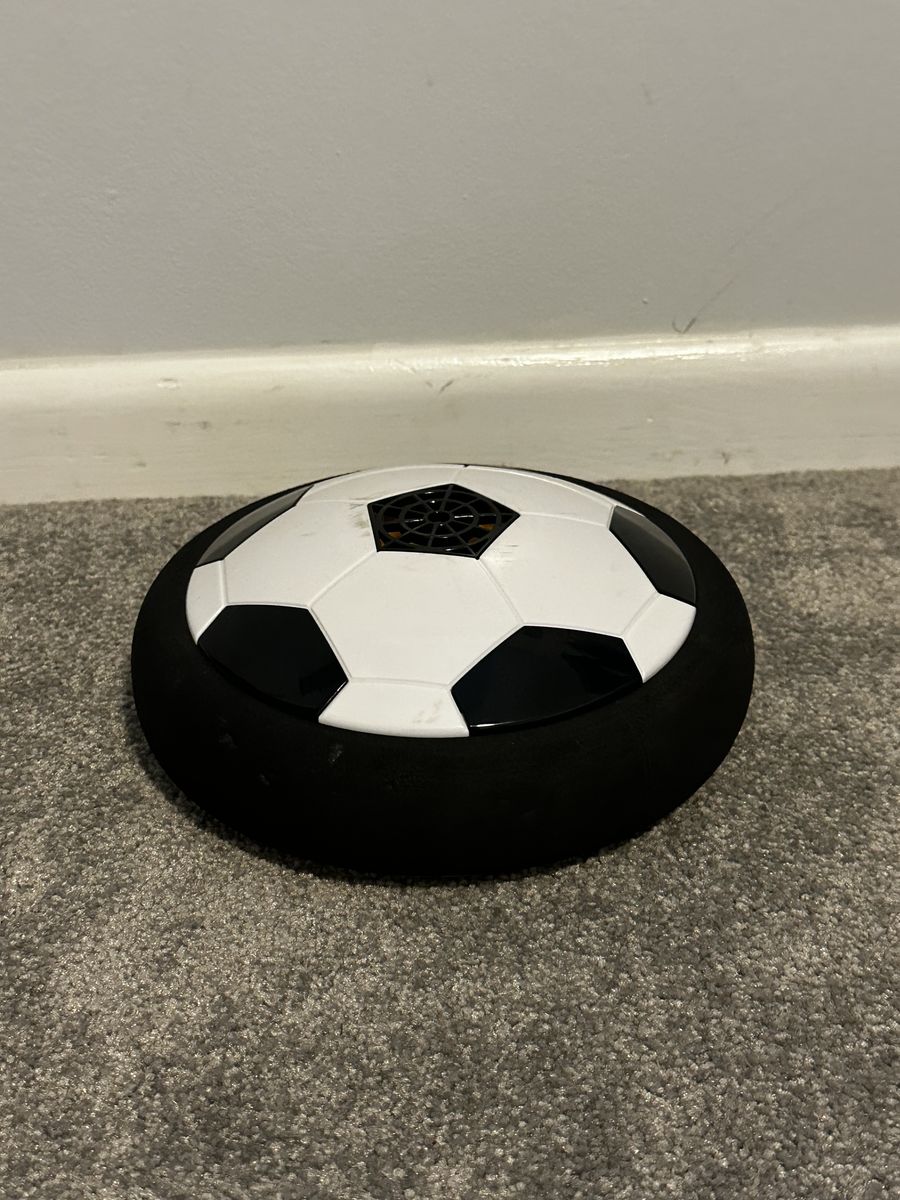 ApplePayThis battery powered soccer toy has foam padding on the sides and bounces off of hard surfaces. It is perfect for indoor play. It has fans on the bottom that push it off the ground and make it slide across smooth, hard surfaces. It sells for $12.99 on Amazon but I am selling this one for $5. This would make a great Easter Basket gift or birthday present. Check out my other listings for toys in excellent condition. Cash, Venmo, or ApplePay only please. Pickup in Sandy near 9400 S and 700 E.