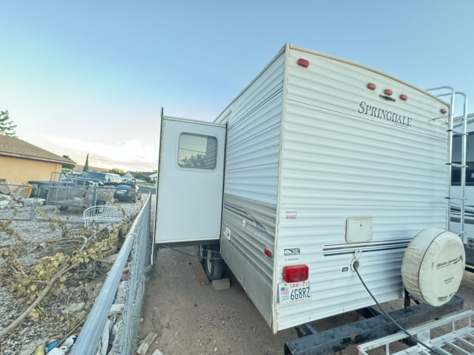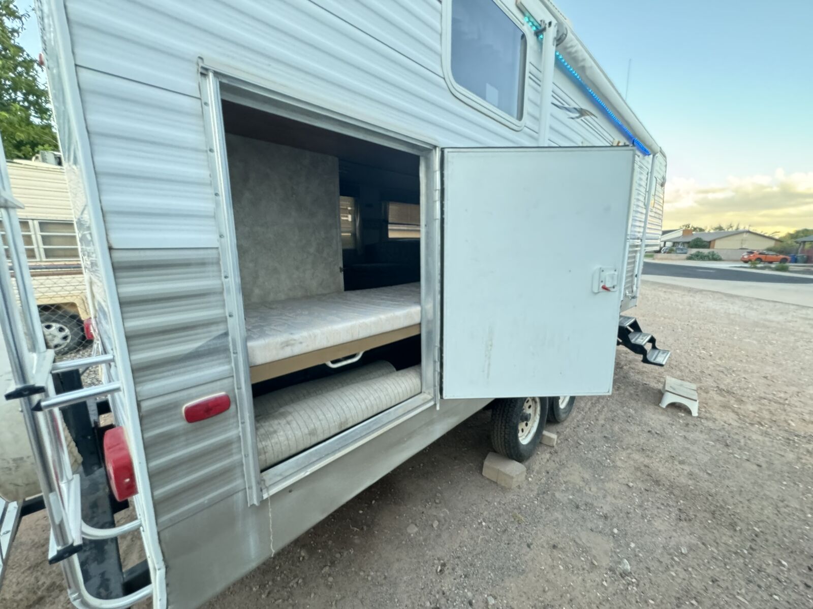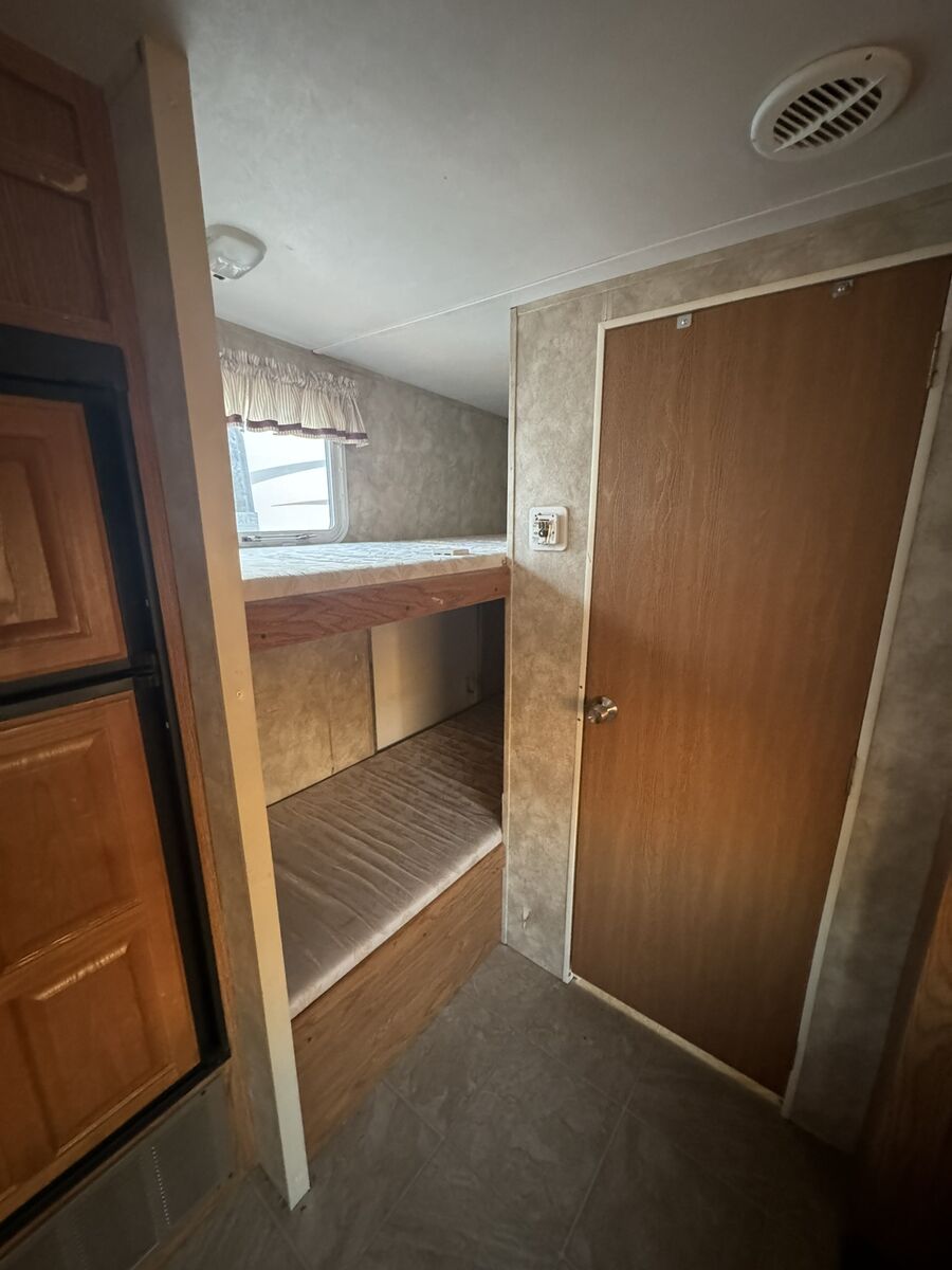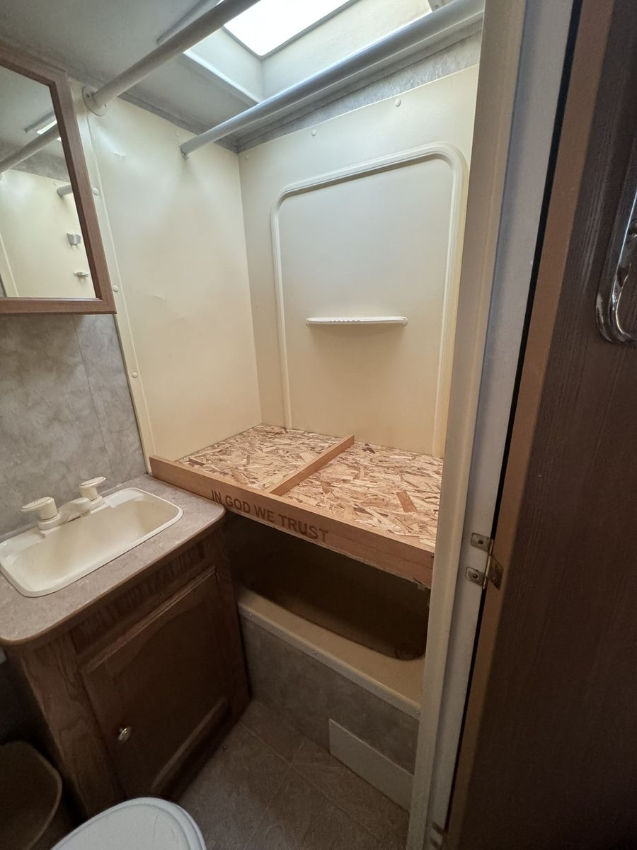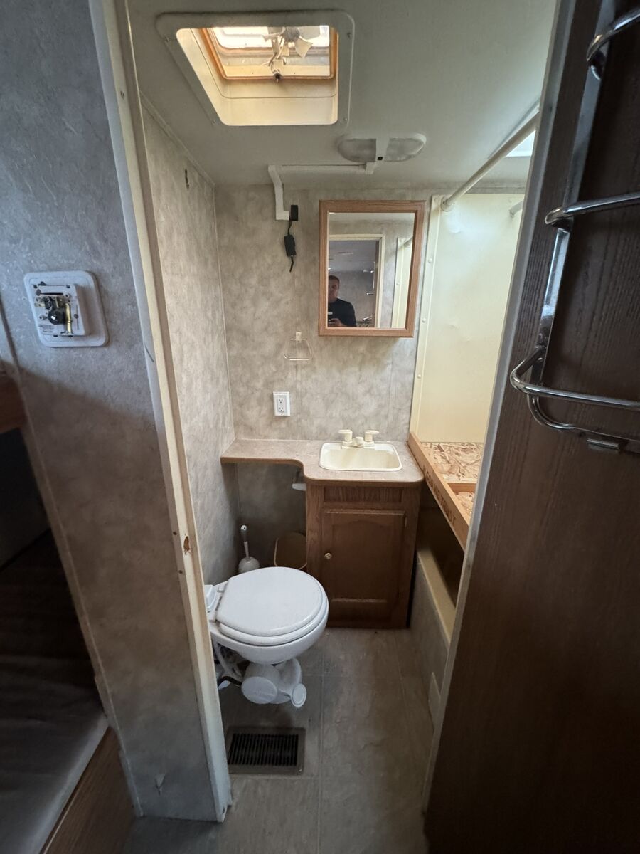 For sale: A well-maintained RV with many upgrades. Owned for 7 years, it features 2 solar panels that keep the 4 golf cart batteries fully charged, plus a 1100 watt inverter with multiple interior plugs for off-grid convenience. Includes a new American flag awning with LED lights, a removable rear rack for extra gear, a Bluetooth stereo with DVD player, and an outdoor shower. Other perks: LevelMatePRO for easy leveling, a cell phone signal booster, and a gooseneck trailer attachment. The stove was removed for extra storage, and a removable shelf was added in the bathtub for additional closet space. text me at 435-four 1 four 56 seven 4.