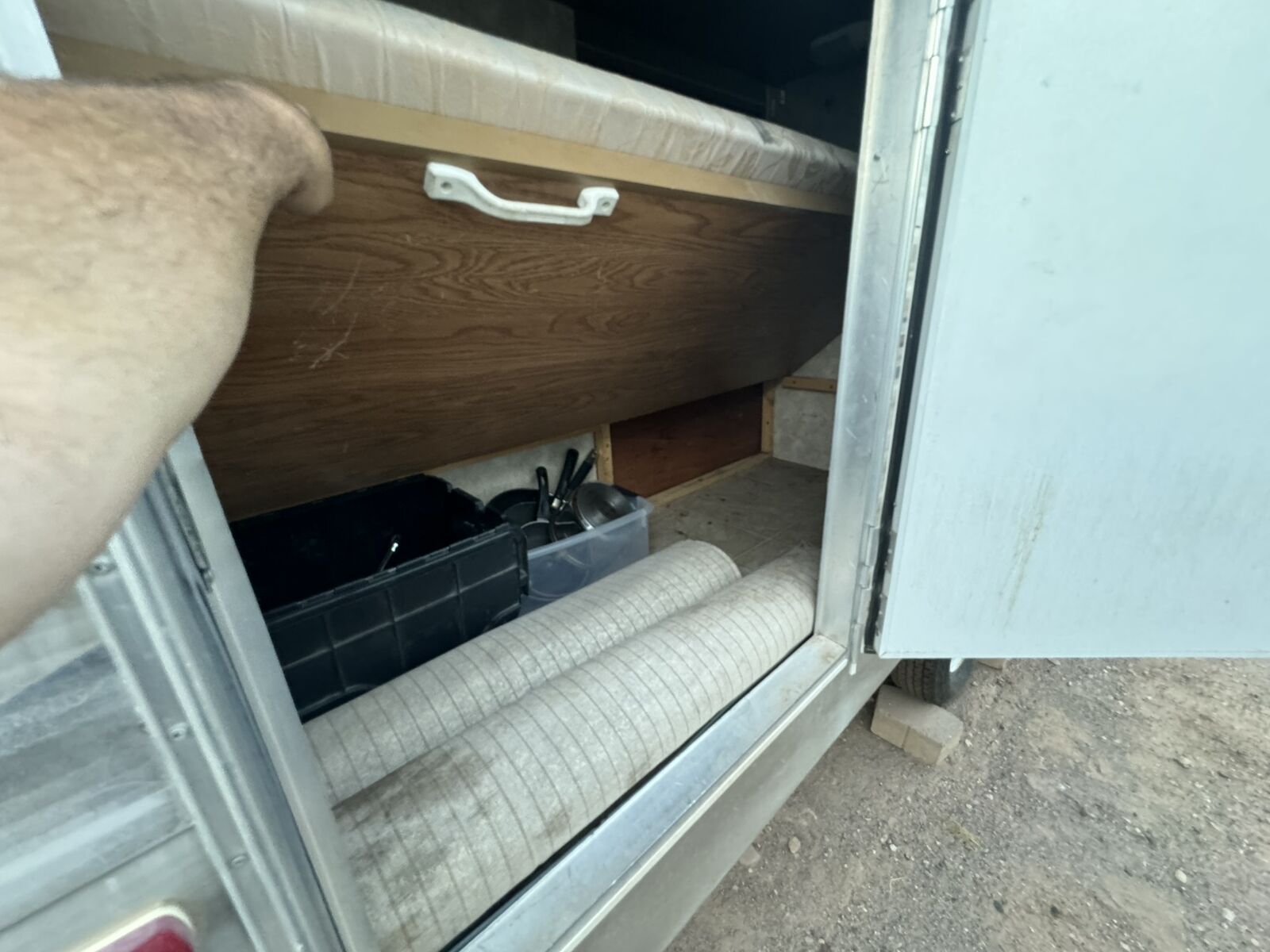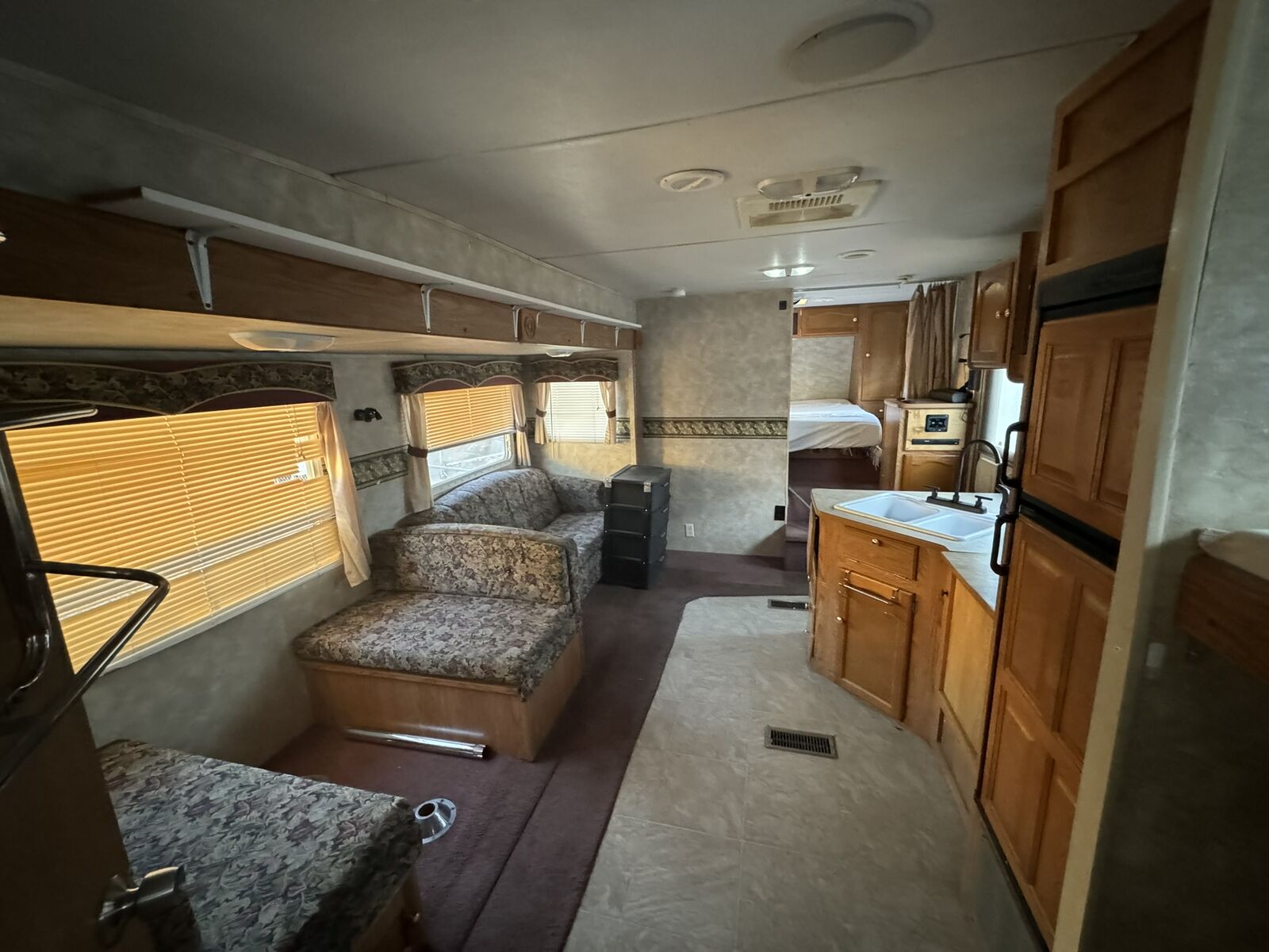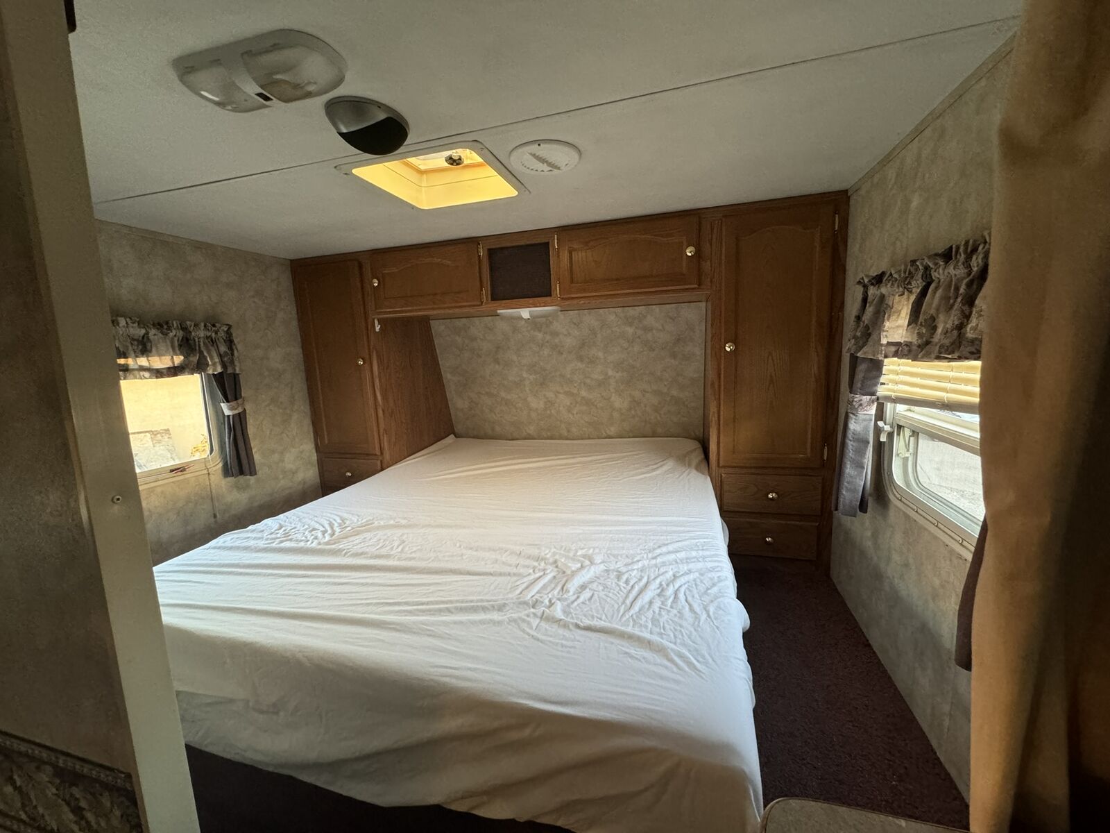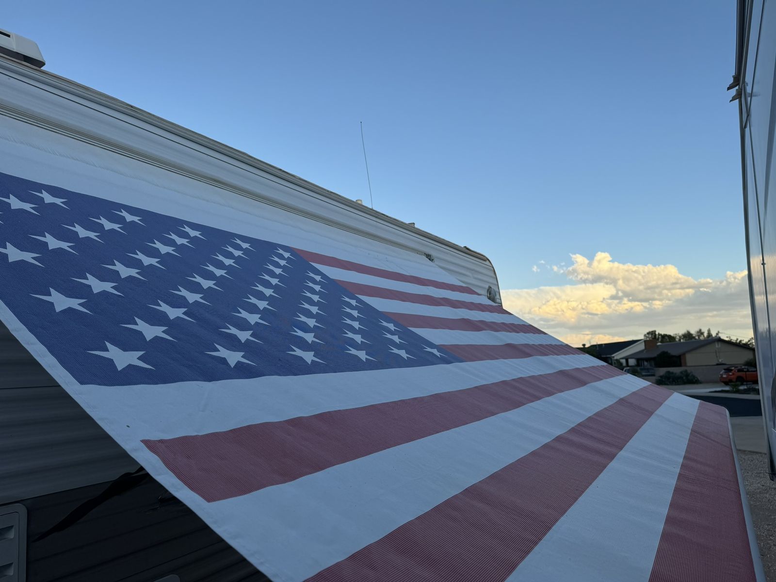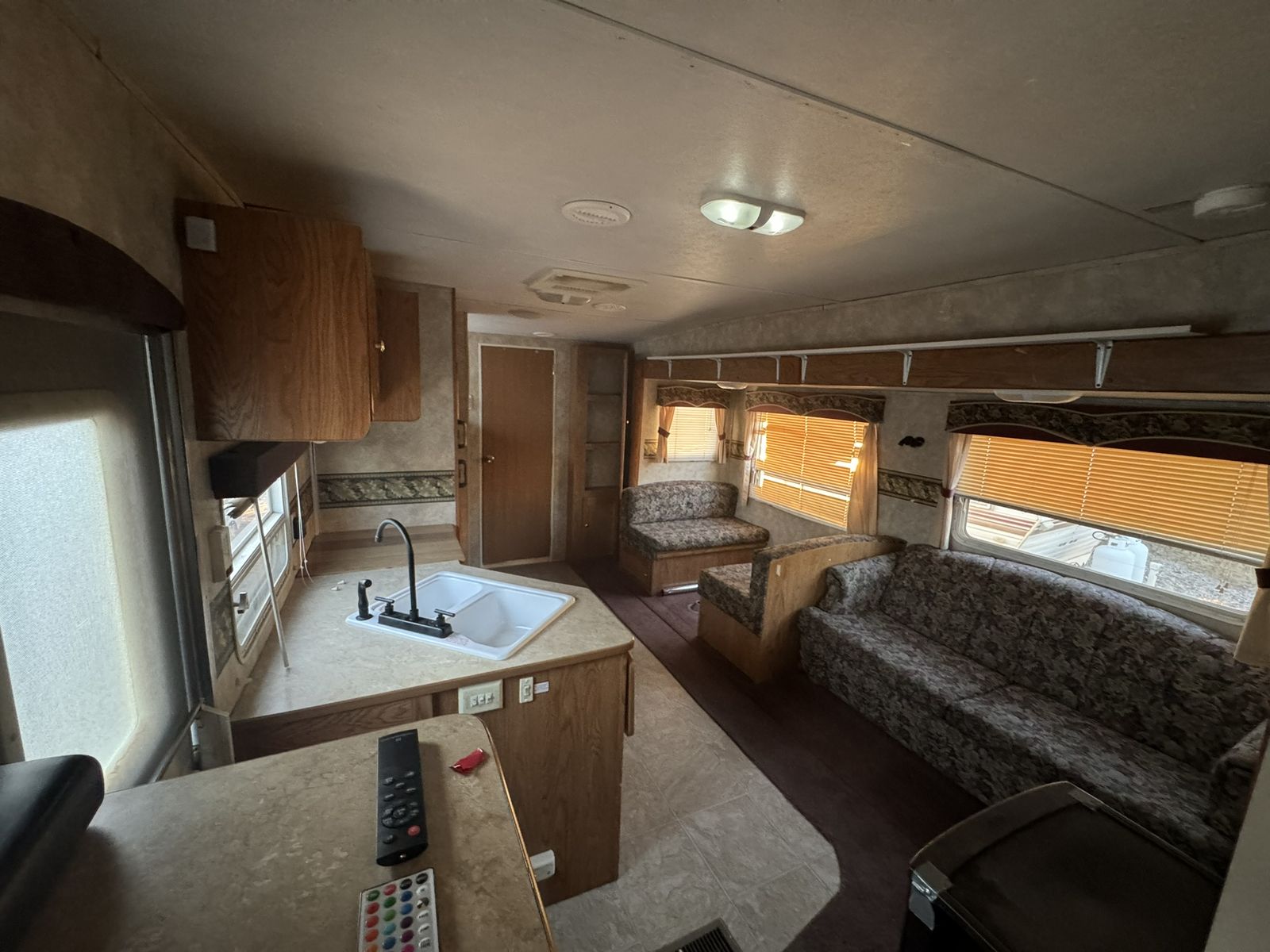 For sale: A well-maintained RV with many upgrades. Owned for 7 years, it features 2 solar panels that keep the 4 golf cart batteries fully charged, plus a 1100 watt inverter with multiple interior plugs for off-grid convenience. Includes a new American flag awning with LED lights, a removable rear rack for extra gear, a Bluetooth stereo with DVD player, and an outdoor shower. Other perks: LevelMatePRO for easy leveling, a cell phone signal booster, and a gooseneck trailer attachment. The stove was removed for extra storage, and a removable shelf was added in the bathtub for additional closet space. text me at 435-four 1 four 56 seven 4.