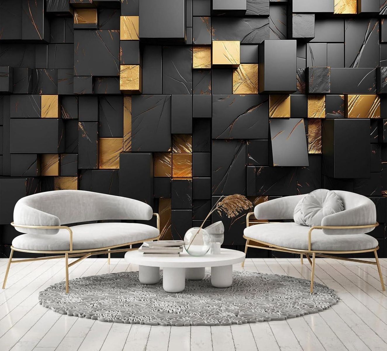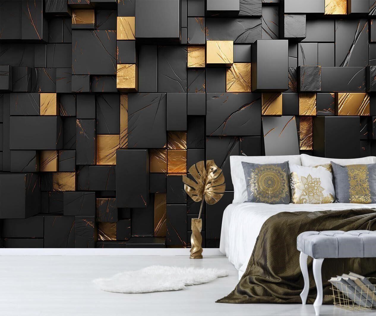 TUNDJ Black Geometric Wallpaper 82x57in
