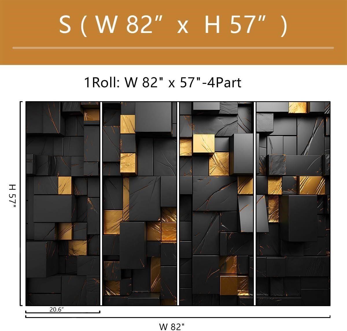Fixed size: S size is 82x57 (210CMx145CM), divided into 20.6x57x4 parts. Warm reminder: The mural is peel-and-stick, so you can directly stick it after tearing it off.