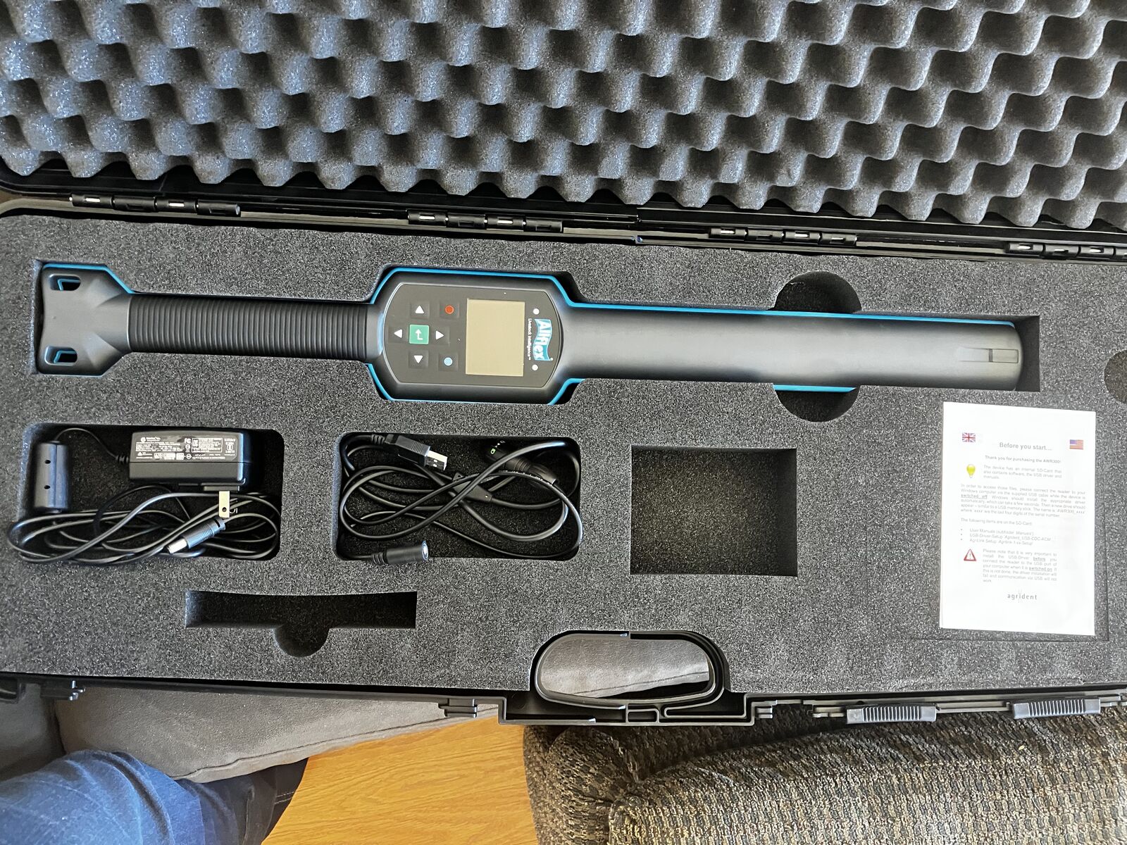 The AWR300 is the next generation EID stick reader and features a 8GB memory with a large back-lit display. It is lightweight, well balanced and comfortable in the hand.