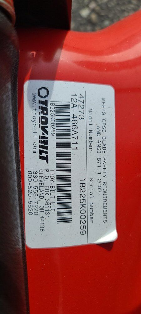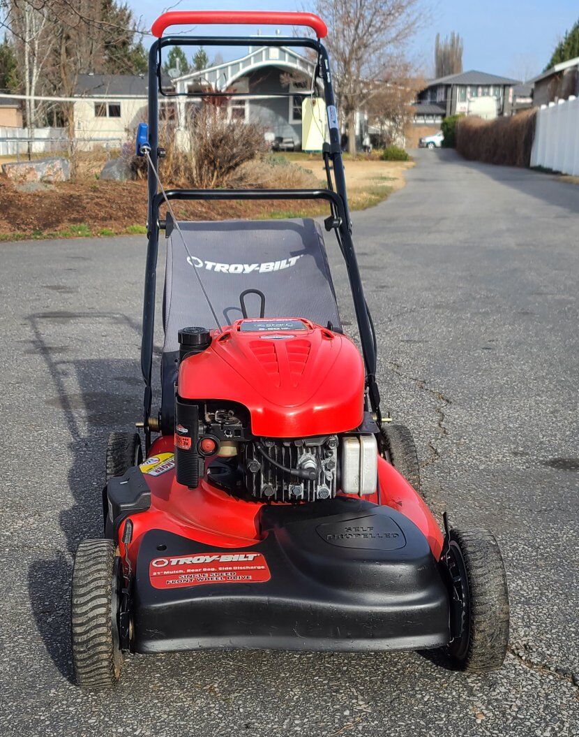Troy-Bilt 21” self-propelled lawn mower (Model 12A-466A711) powered by a strong 6.5 HP Briggs & Stratton 4-cycle engine.