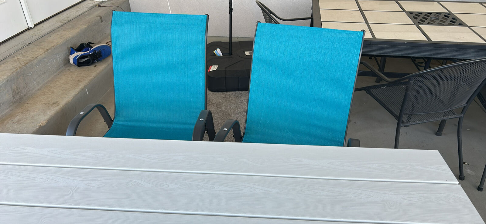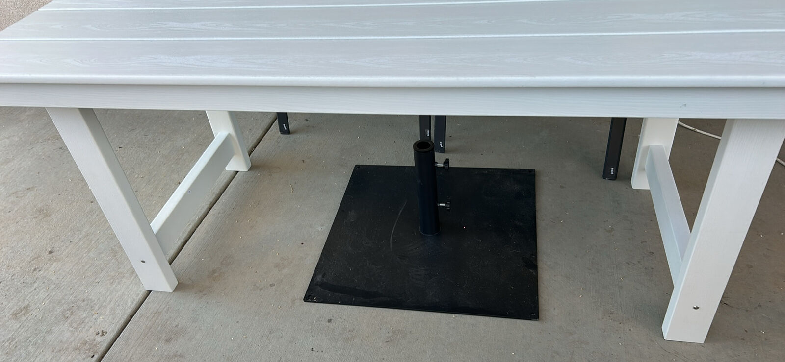 VenmoNew Polywood table. Comes with 2 chairs and an umbrella base.
