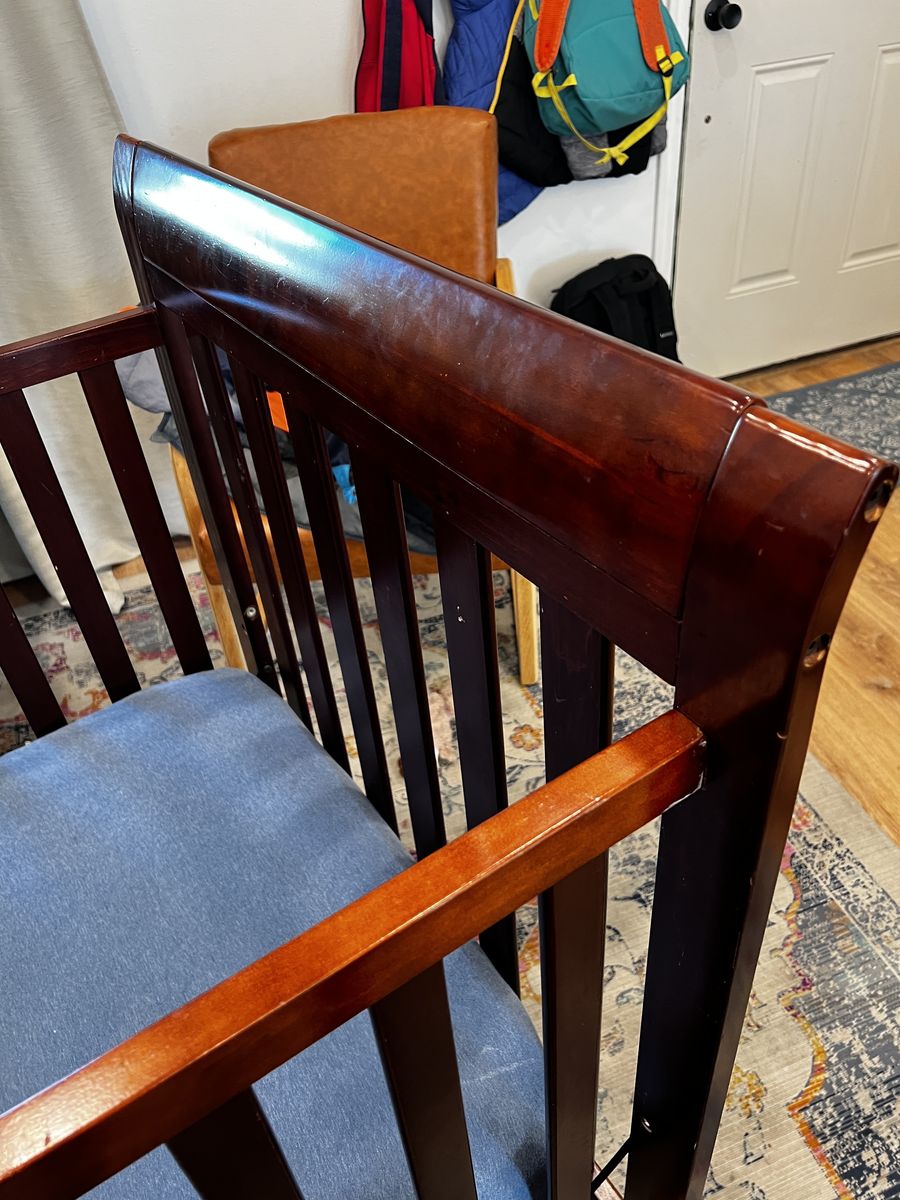 Free baby crib! Comes with the baby mattress, and 5 crib sheets.