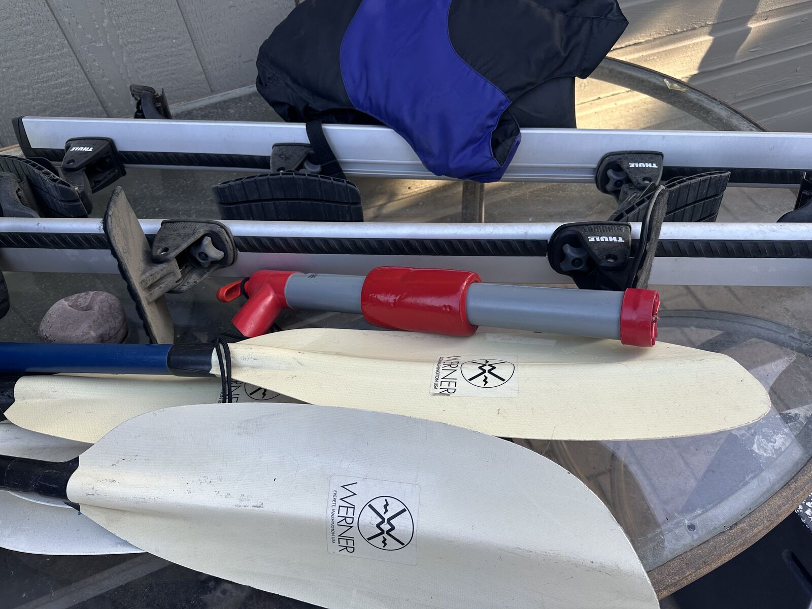 Zelle1996 Prijon Sea Kayaks for sale including two Werner paddles, Thule rack (new) and all gear.
