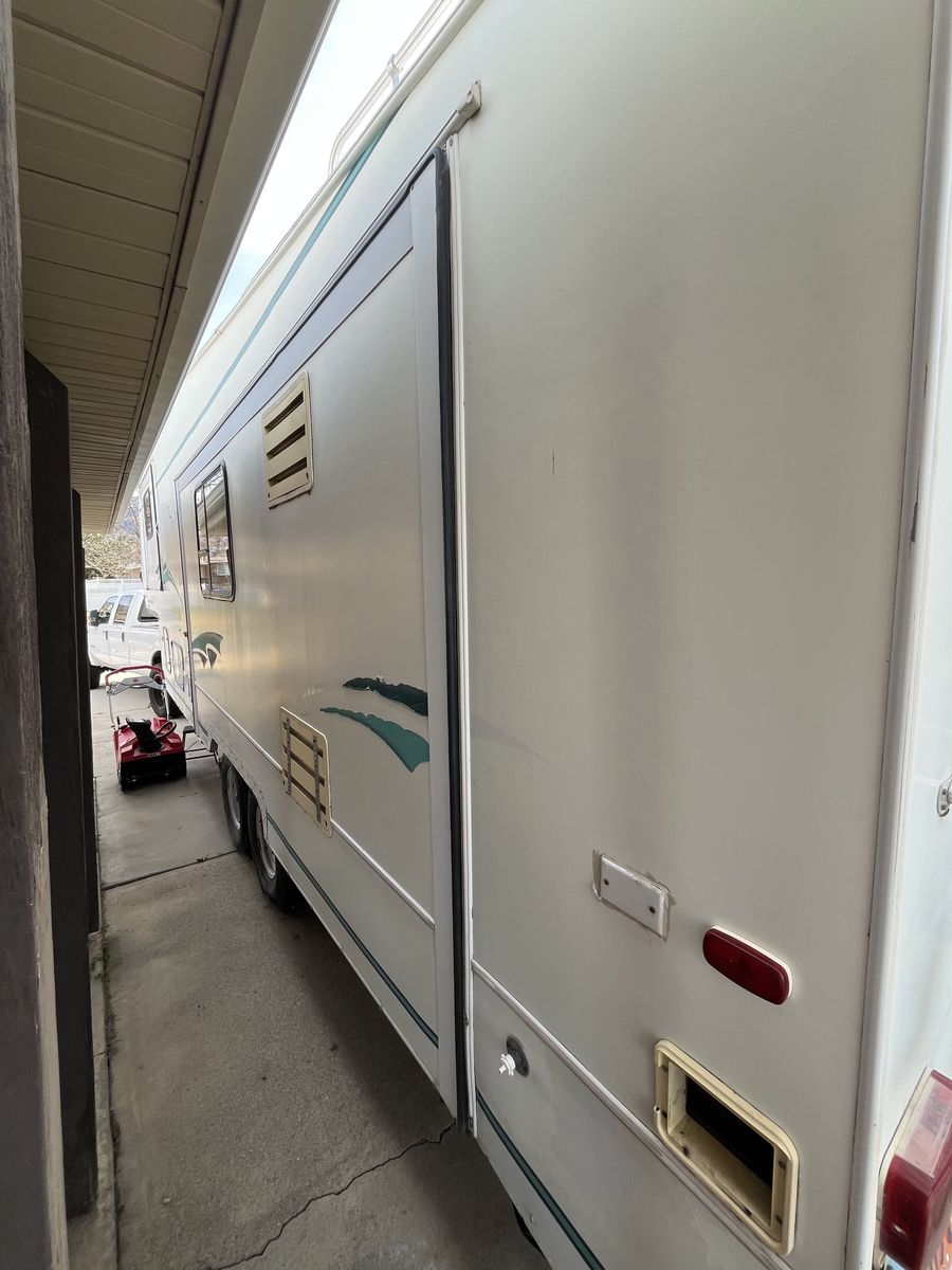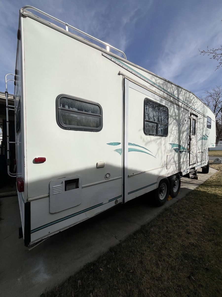 5th wheel RV trailer with 3 slide-outs. All slide-outs and electrical work just fine. Last time I had it out was about a year ago and AC/Heat both worked great. Tires are in decent shape with lots of tread still left, but they are pretty old. Electric Jack and hand crank still work great. This thing has plenty of space on the inside which is what originally drew me to it.
