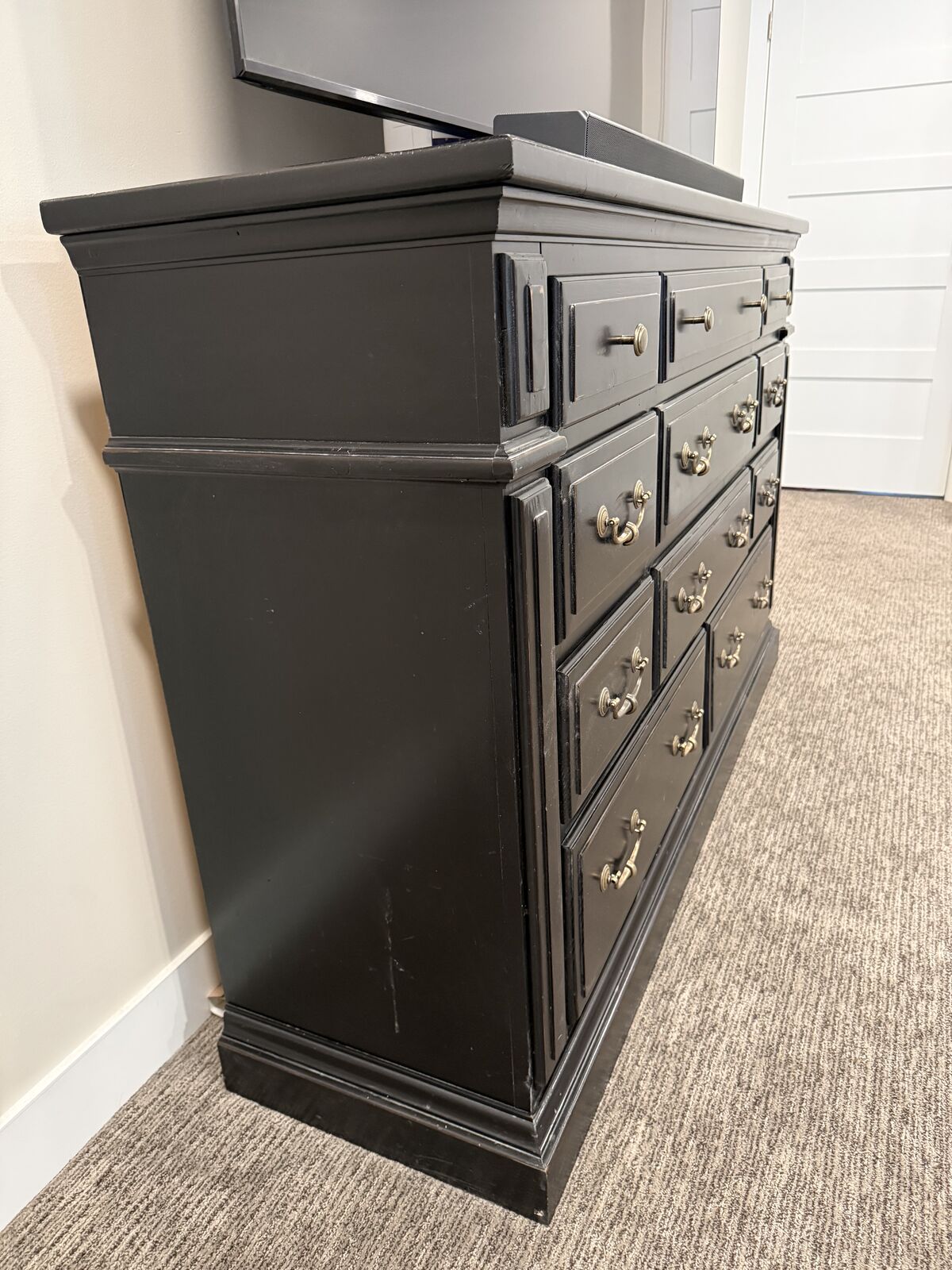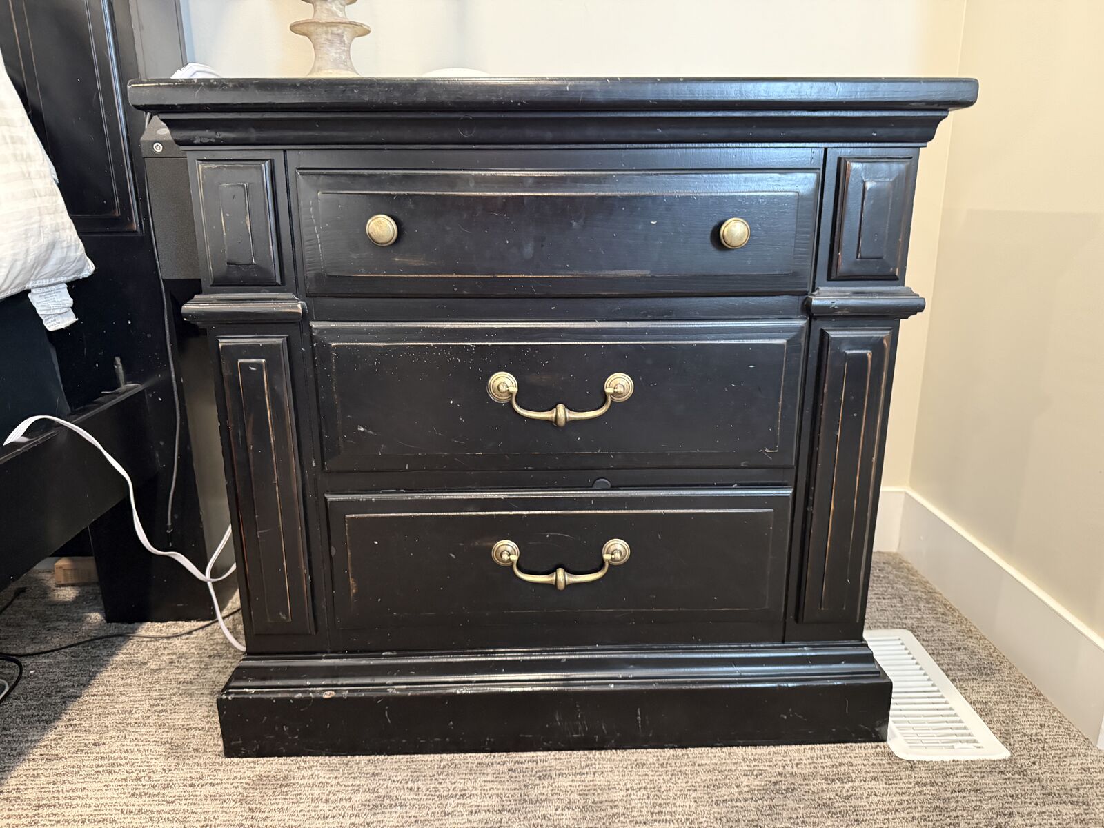VenmoSolid wood bedroom set. We are moving cross-country and cannot bring it with us. The set has signs of use but is naturally distressed so the marks don’t stand out like a sore thumb. Everything still works well—drawers all slide smoothly in both directions.