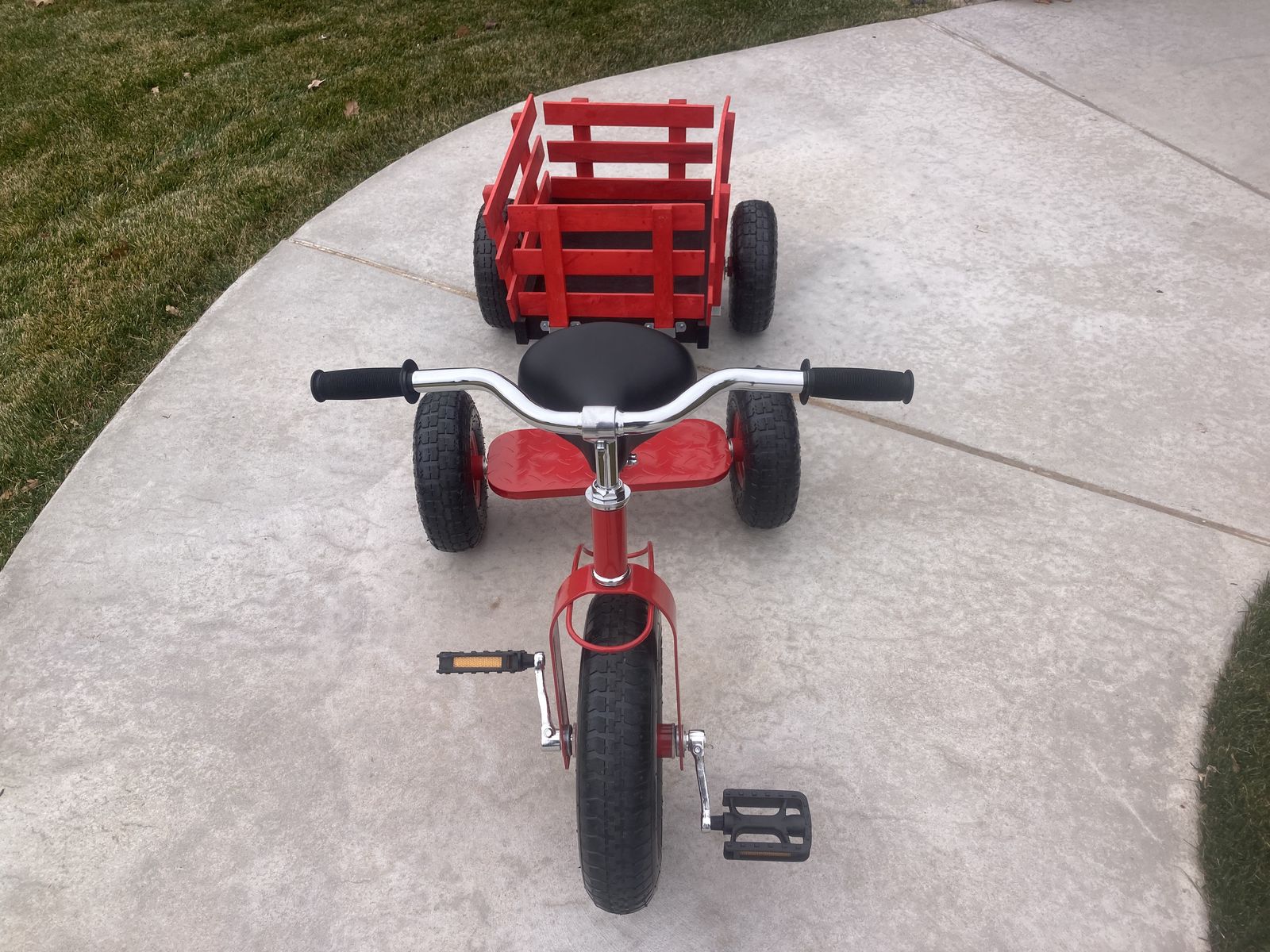 This is a brand new children’s tricycle with a trailer. The trailer is removable. The trailer rack is also removable. This tricycle/trailer combo retails for $215.00.