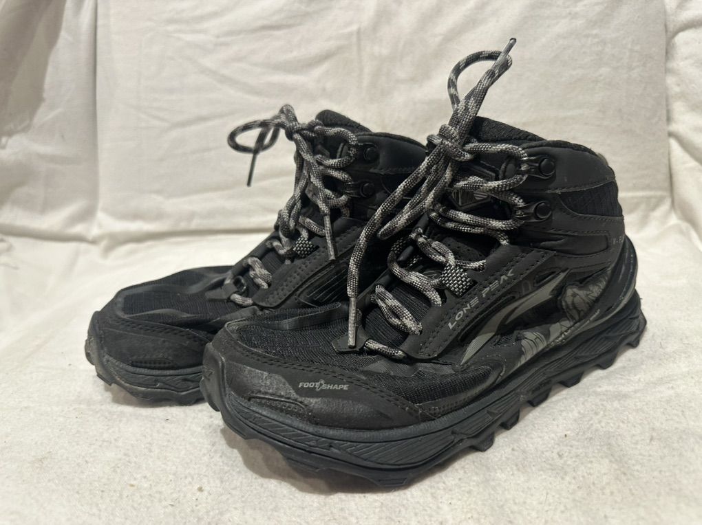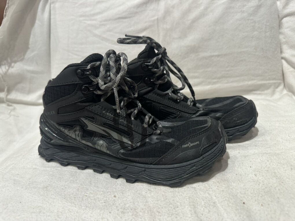 Altra Lone peak women’s size 7, black nylon, lightweight, mid trail or hiking shoes (boots). These are in good condition, see photos for details. I take cash or Venmo, but cash is preferred. Text is best. 801-201-4446. Check out my other ads for additional sizes and styles.