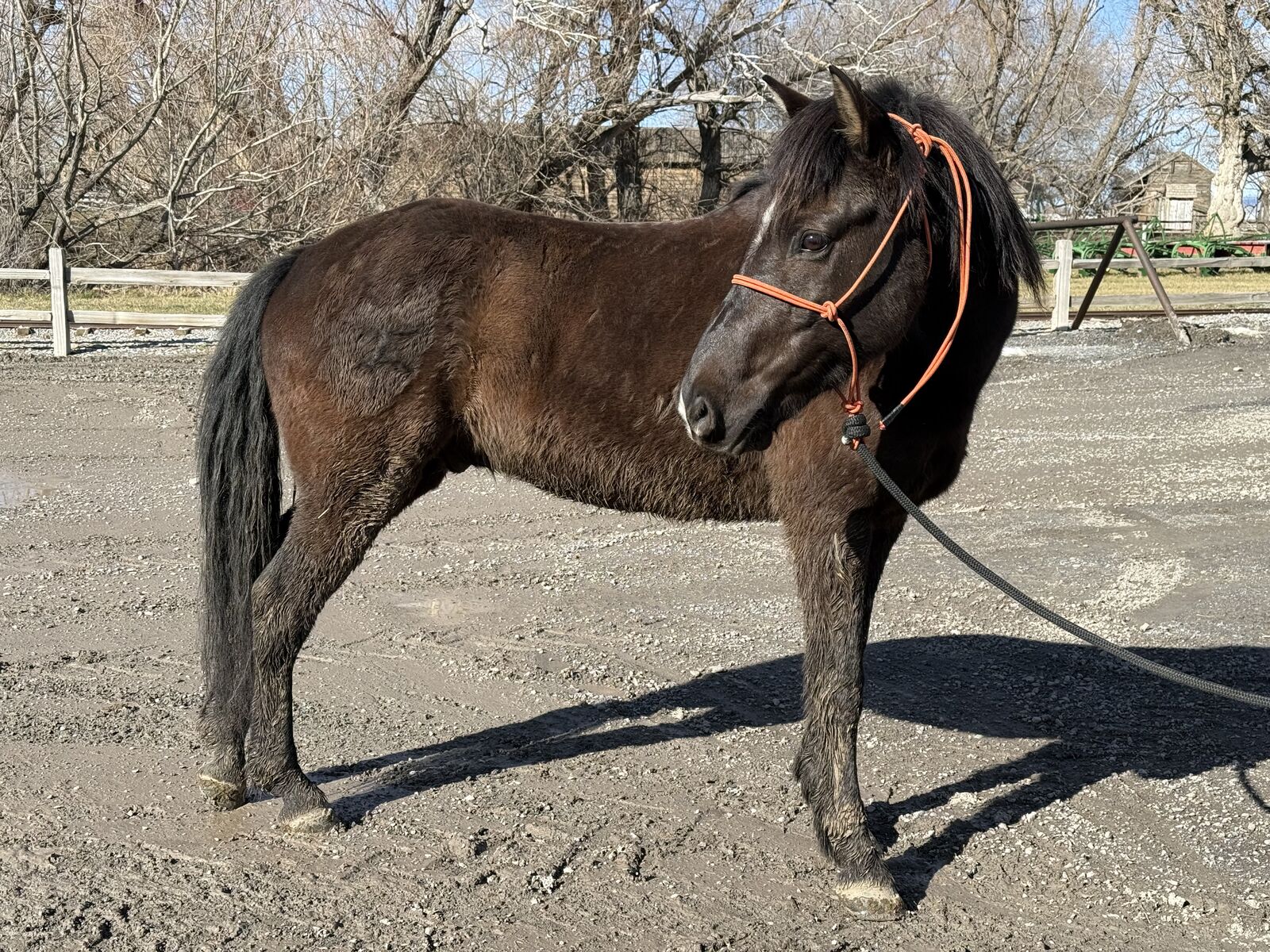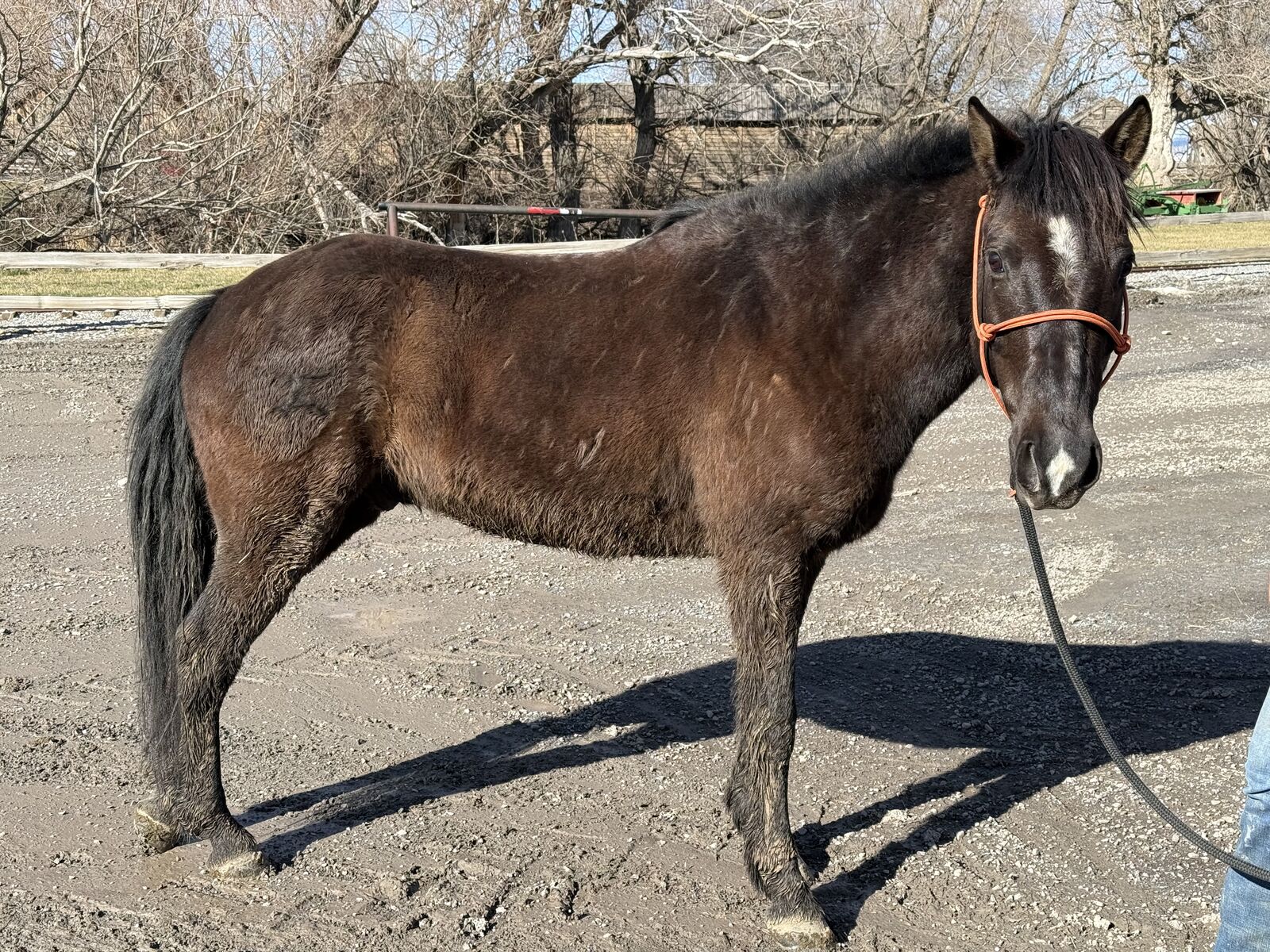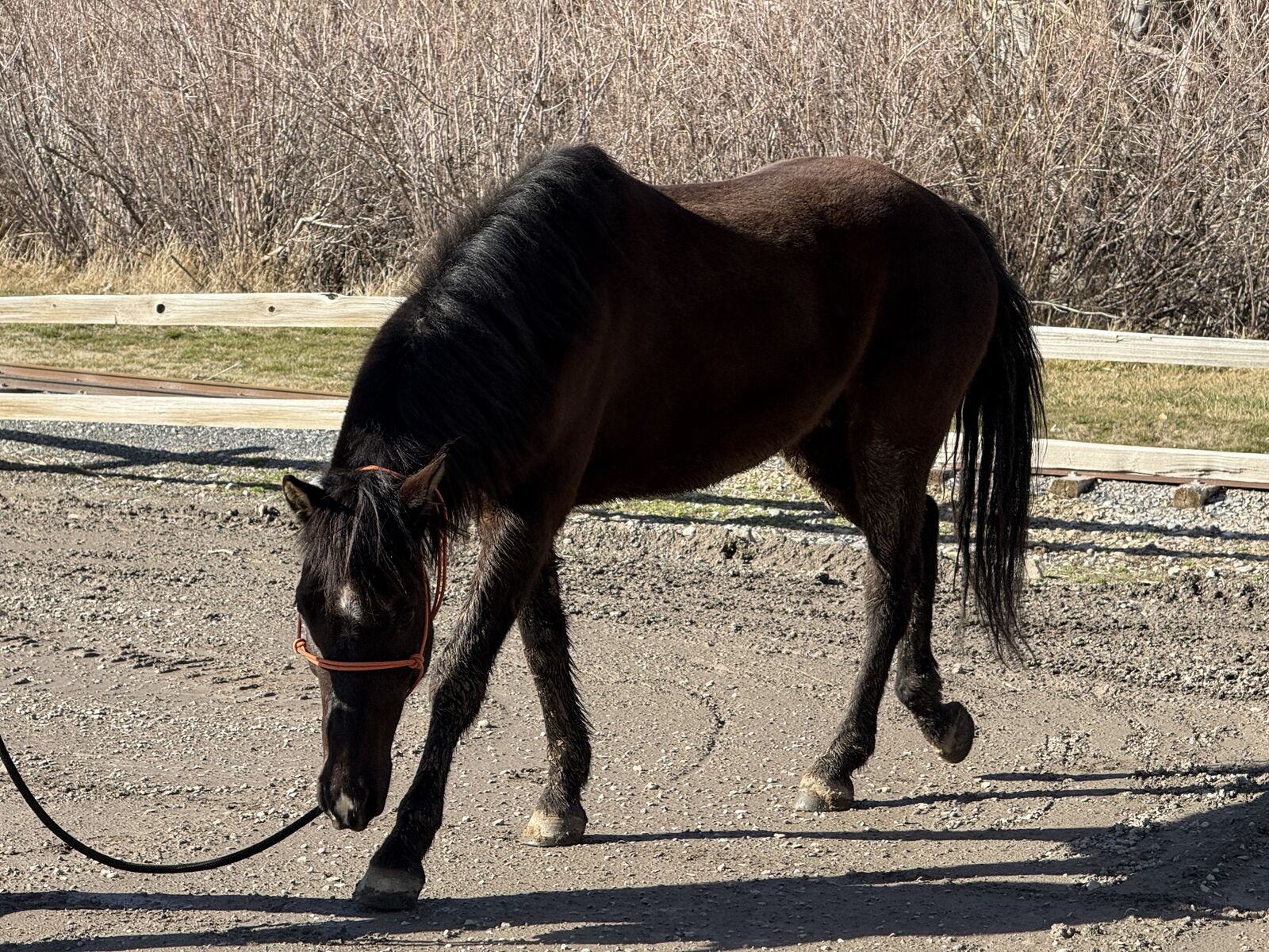 Titan is 11 years old. We bought him in spring of 2025 for our pony rides. He came from somewhere where he was being ridden by an older woman who reported that he just needed a little bit more of a firm hand when riding because he is a bit stubborn. We put him on a mechanical walker and had kids riding him all summer and he did great. In the fall we noticed some behaviors such as trying to kick at staff when we would prep him for pony rides. I believe he discovered he could get away with some poor behaviors with our younger staff and that led to more rebellion. He is a little shy with brushing on his right side and when putting on a saddle. When pushed he has kicked and bit. He is a bit pushy and needs someone who can dedicate to retraining those manners. He has some great potential and just needs someone who can give him more time and attention, rather than pony rides in a circle each day.