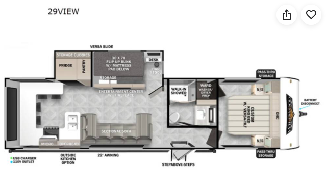 Also Includes: * KING SIZE BED * WASHER/DRYER READY * 1 SLIDE OUT * DOUBLE BUNKS * 3 BURNER STOVE * MICROWAVE * SINGLE DOOR REFRIGERATOR * AC * PATIO AWNING**