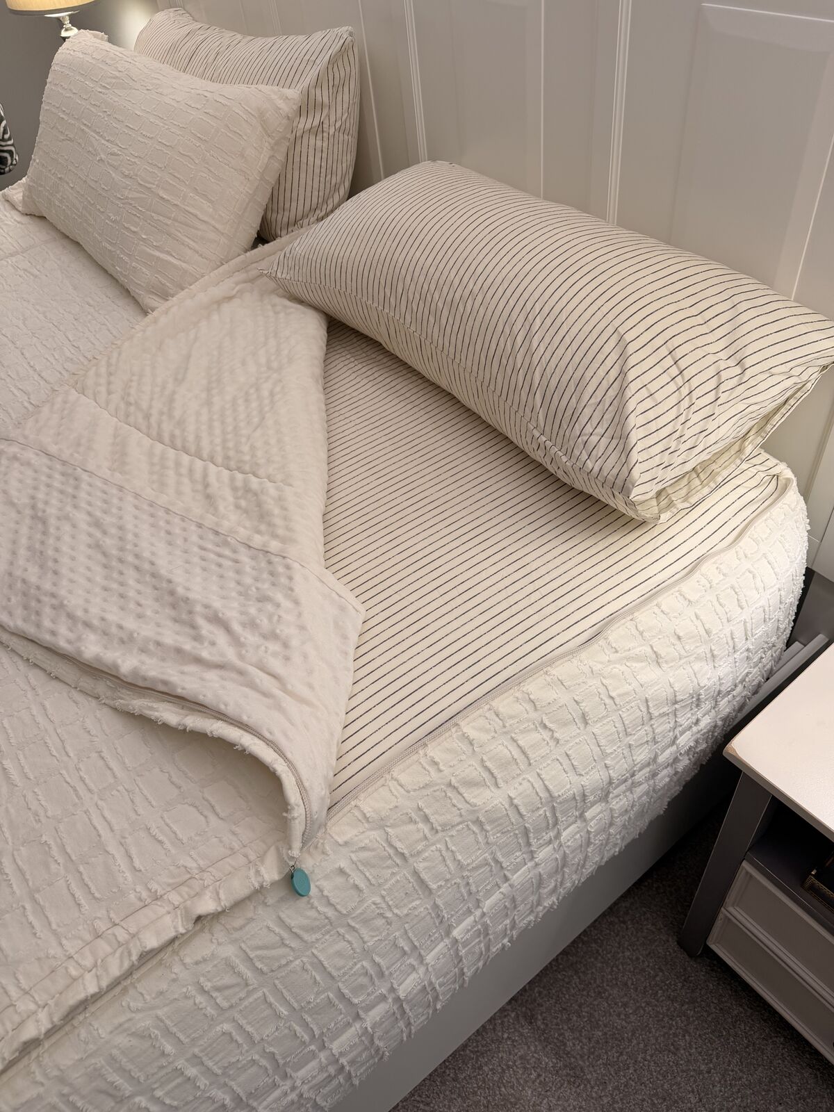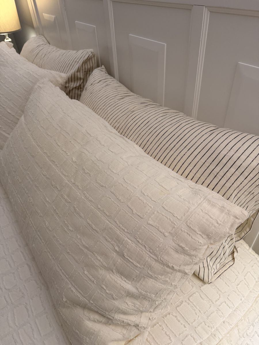 VenmoKing size. Excellent condition . Comes with 2 shams and 2 cases Beddy's Cream of the Crop Luxe line is a premium, creamy white, textured zipper bedding set designed for a cozy, high-end look. Part of the Luxe line, it features a thick, soft, and durable 100% cotton inner lining, with options for ultra-plush minky on the top interior comfort panel. See Less