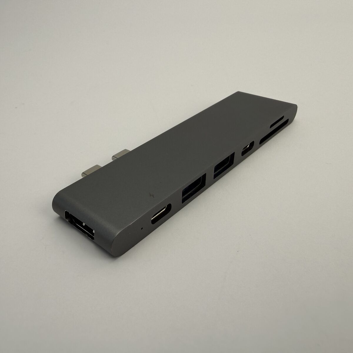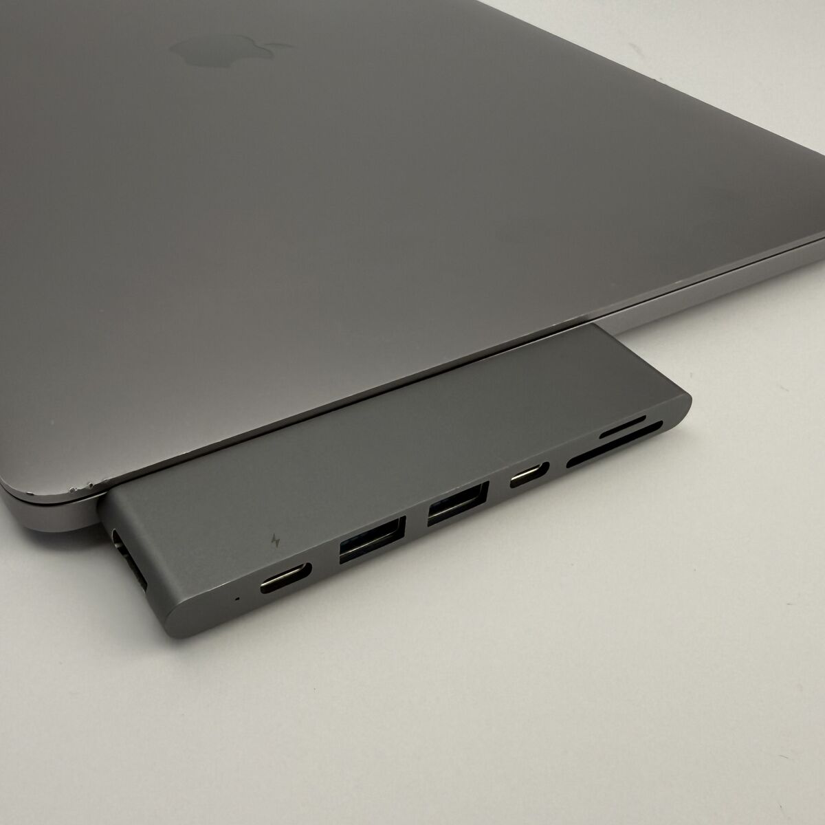 ApplePayGreat condition, everything works perfectly. Only one previous owner, iCloud signed out and factory reset. Some minor cosmetic wear on the top and sides. Includes original USB-C cable, 100W power adapter, Purgo 7-in-1 adapter, and Human Centric docking station.