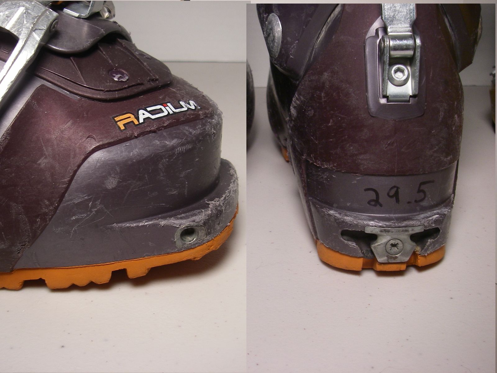 Used ALPINE TOURING Ski Boots. Some of these work with Tech Bindings (have toe corner divots called tech insert). Prices starting at $29 and up (see individual prices below).