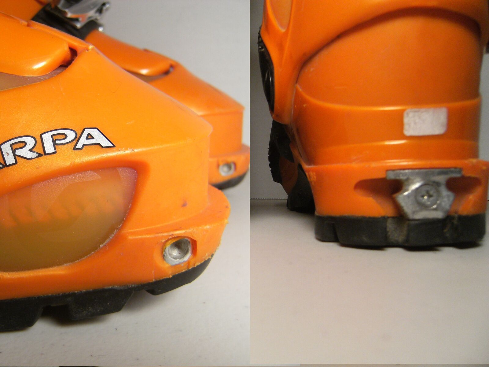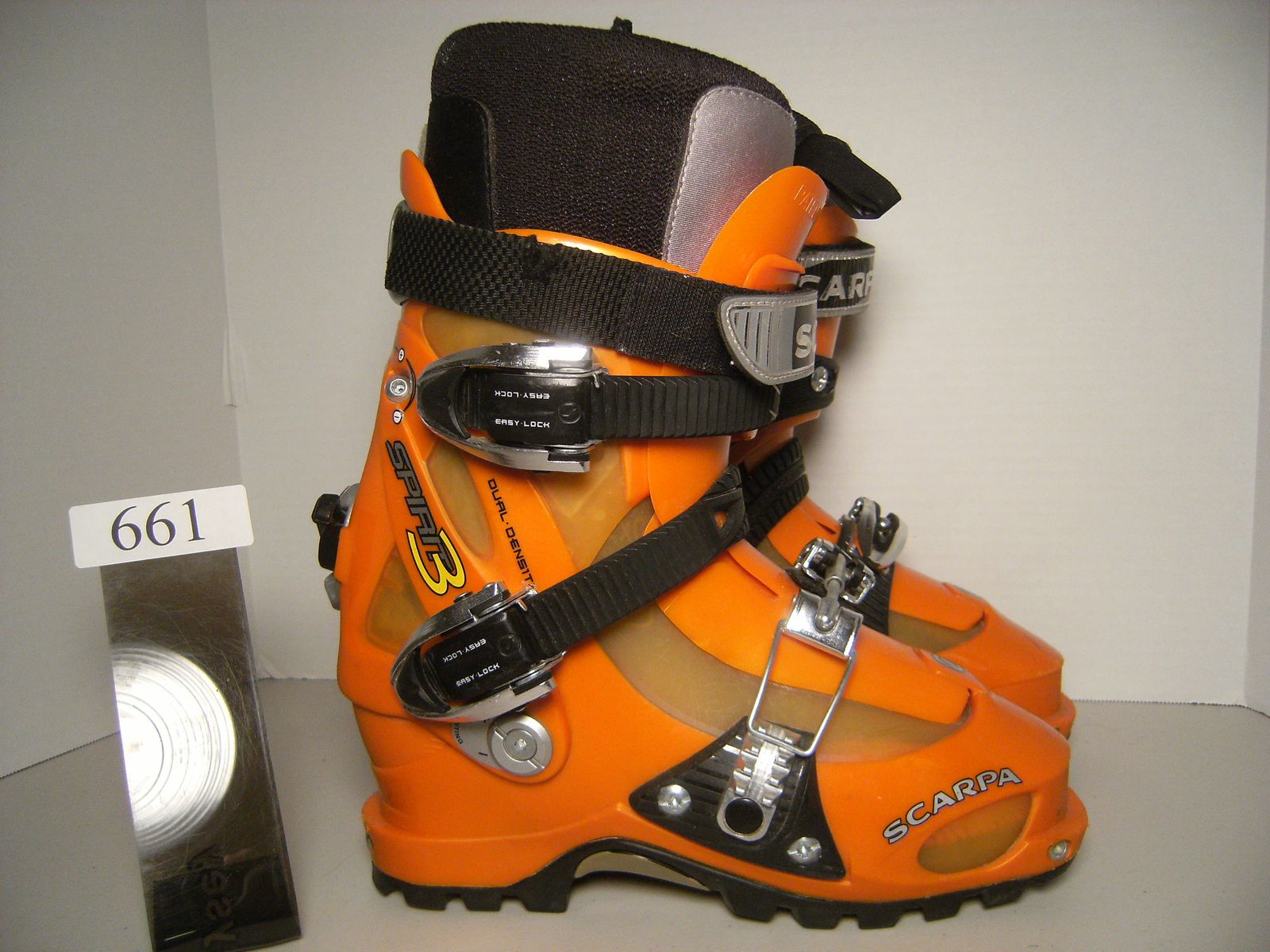 MONDO 23-25 UNISEX US SZ 6-7 SCARPA SPIRIT 3, TECH INSERT TOES / CLEATED HEELS, ORANGE 288 MM BSL GOOD CONDITION ITEM 661 $59