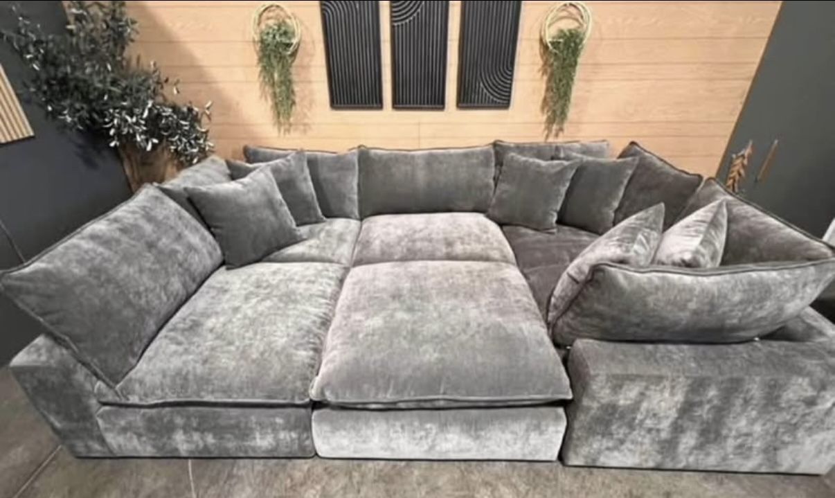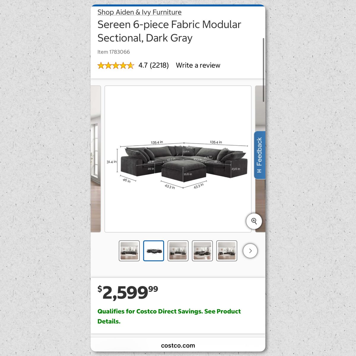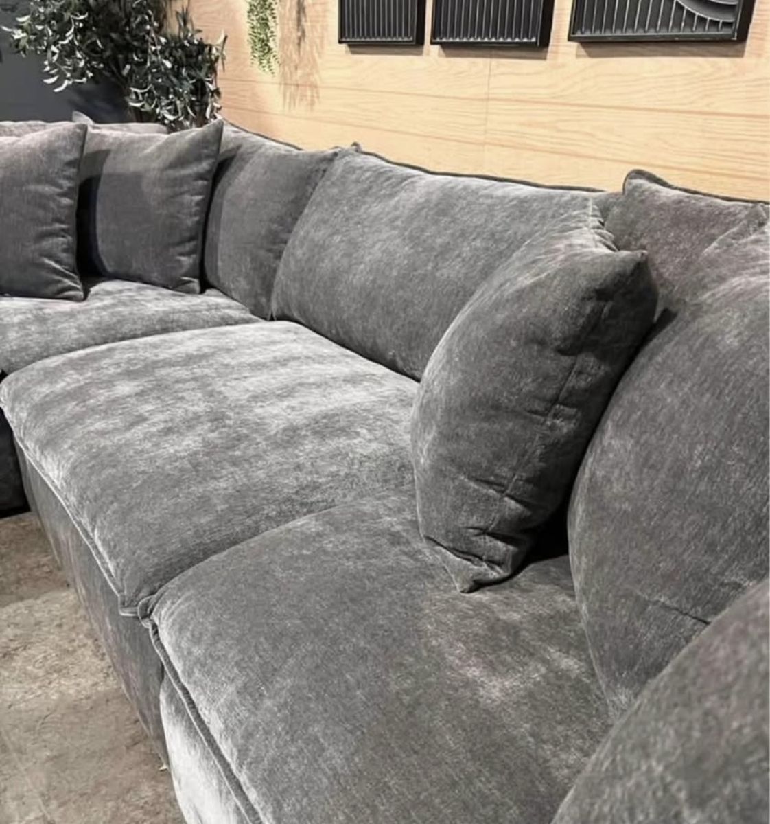 Sereen 6-Piece Fabric Modular Sectional Refined Comfort in Every Detail Experience the blend of comfort, design, and versatility with the Sereen 6-Piece Fabric Modular Sectional from Aiden & Ivy™. Crafted for relaxation and style, this sectional features deep seats and plush, reversible feather-blend back cushions coupled with feather & foam seat cushions to provide customizable comfort. Upholstered in a cozy dark grey. TheSereen is designed for durability and longevity. Its modular design allows for numerous configurations, making it an ideal fit for any room size and layout. The sectional includes a matching ottoman for additional comfort and style. Each piece is fully upholstered, offering the flexibility to stand alone or integrate seamlessly with the entire group.