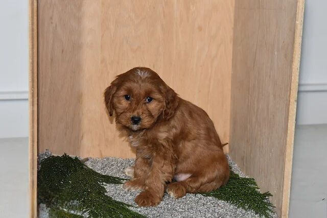 She’s expected to reach about 19–21 lbs fully grown, making her an excellent choice for apartments or homes of any size. Molly has been vet checked, fully vaccinated, and microchipped, and she comes with a 2-year health guarantee, reflecting the great care she’s received. With early socialization and steady affection, she’s growing into a confident, loyal, and well-rounded companion.