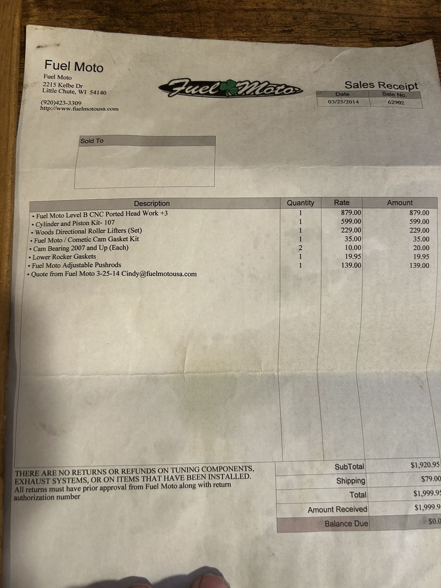 VenmoThundermax tuner, ECM with Integral Auto Tune System, Fuel Moto Level B CNC Ported Head, Cylinder and Piston kit, Woods Directional Roller Lifters. Experian Vehicle History Report. Low miles, 3 diffrent seats setup