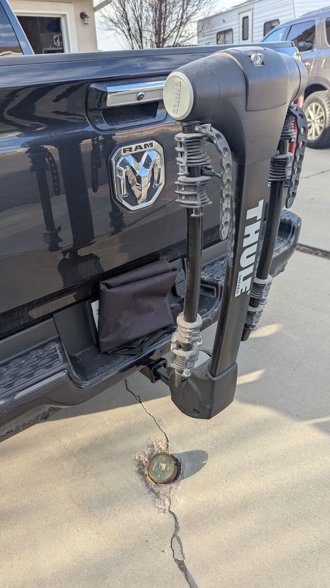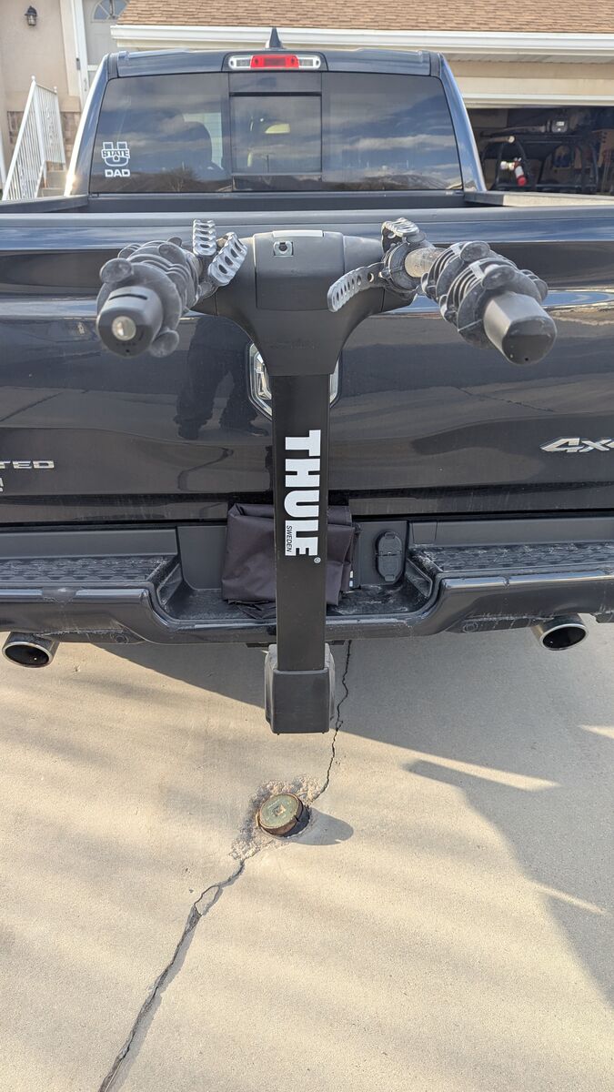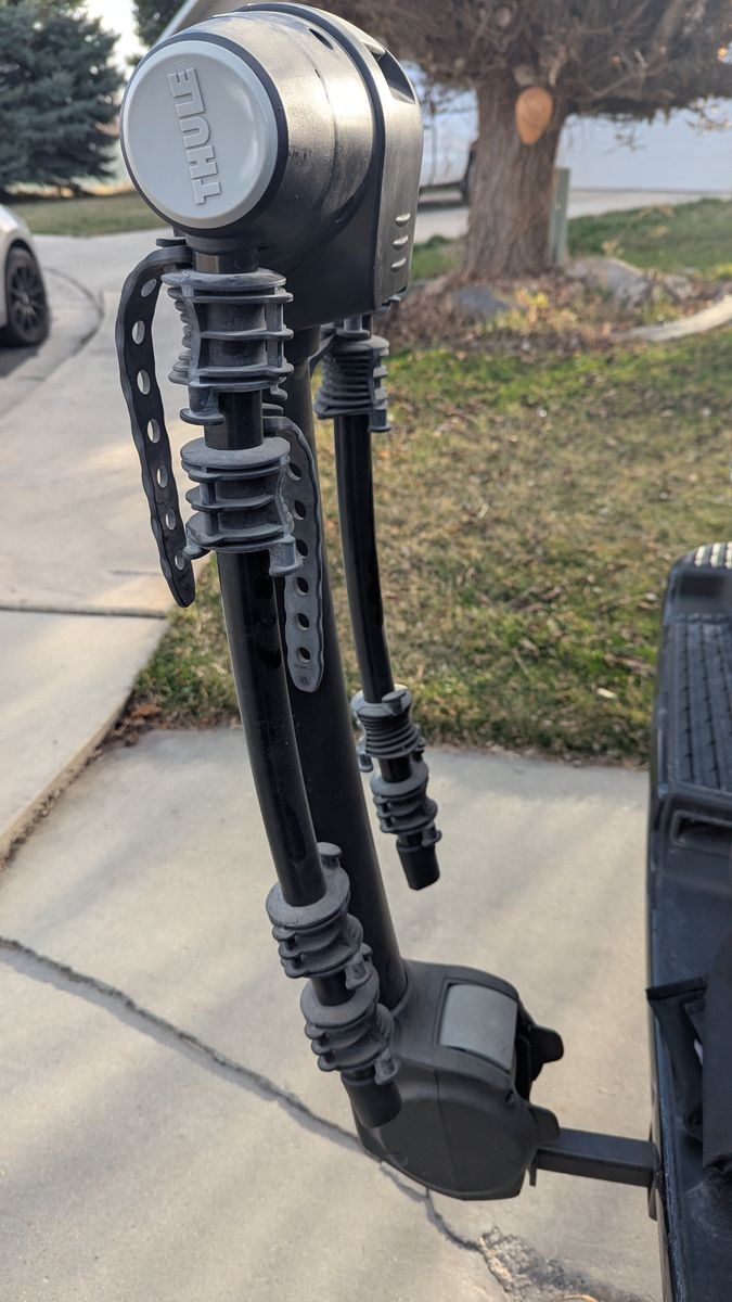 Easily fold down bike arms when rack is not in use. Convenient access to the rear of the vehicle using the HitchSwitch lever to tilt the rack down