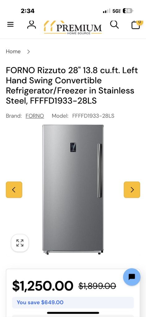 This can either be a fridge or a freezer. Stainless steel runs like a champ will deliver set up and haul your old one away made Forno