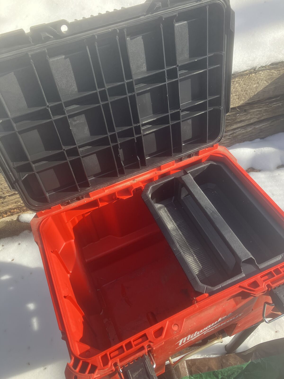 Good tool box in new condition, i removed the adjustable handle in back so it fits in trucks with bed covers, i lost the handle.