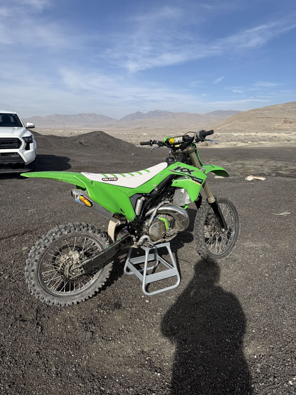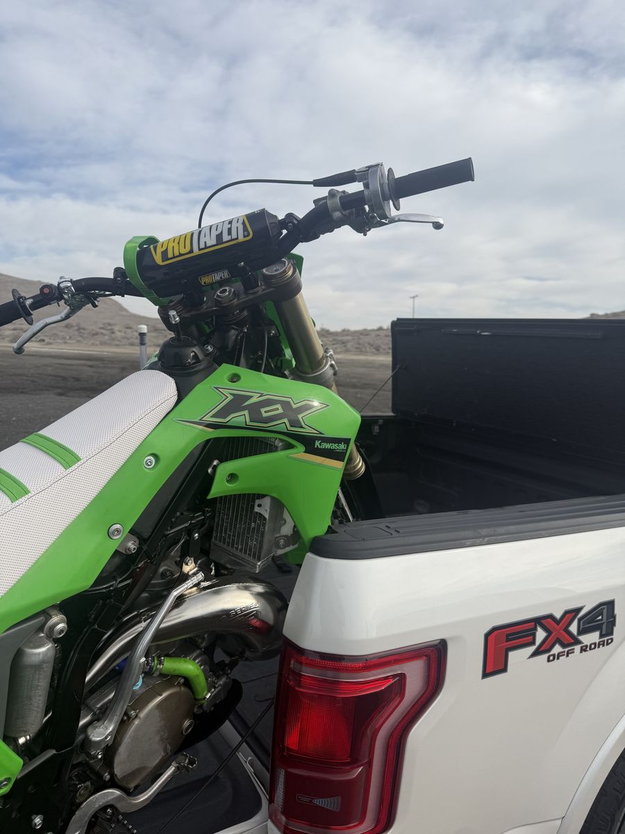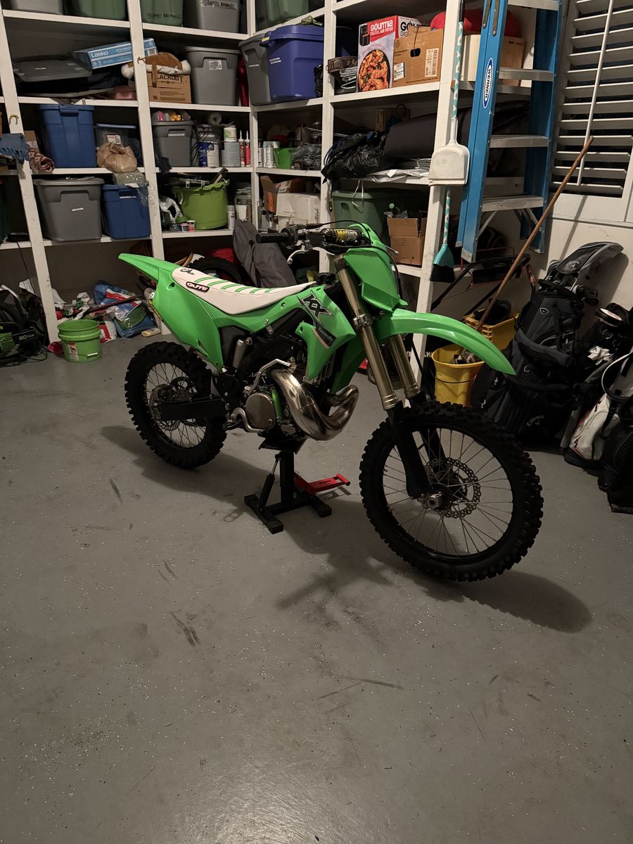 VenmoTitle in hand! The frame is a 1998, It has a 2004 KX250 motor with a fresh Weisco crank and piston. Front forks off of a 2014 kx450. Full FMF exhaust. Powder coated frame, swing arm and wheels. Boysen ignition cover, TX Race restyle kit, guts seat cover(white, not installed), pro taper Fusion bars and mount. Fresh front and rear tires. Just testing the waters, I am in no rush to sell but saw another bike that I was interested in. Open to offers or trades.