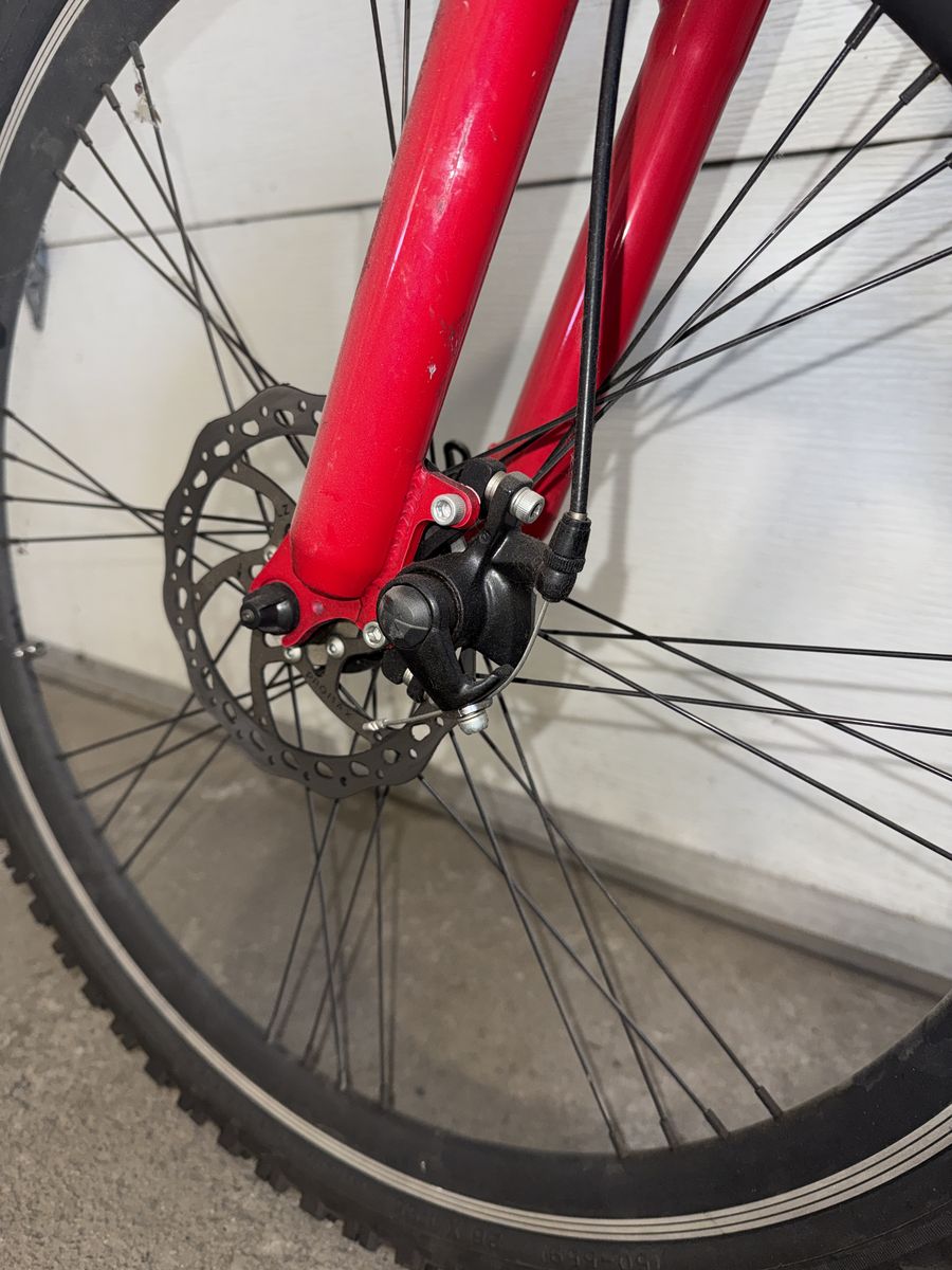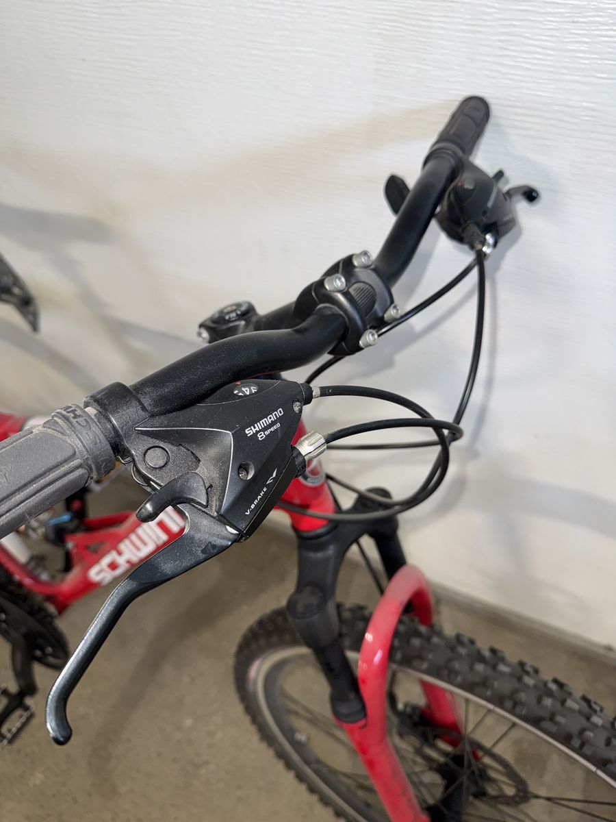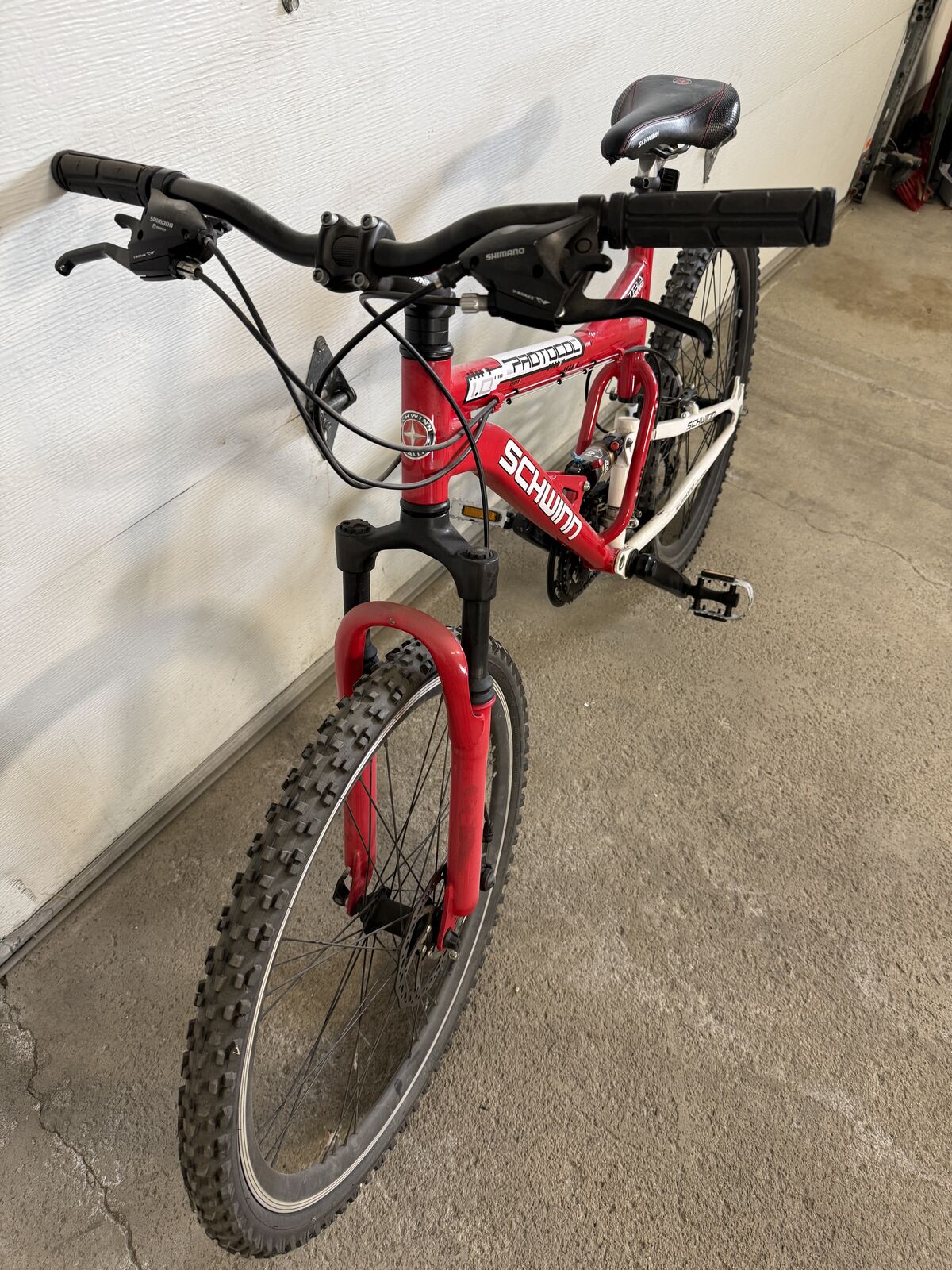 Venmo21-Speed shifter and lightweight aluminum frame, full suspension. Good tires and disc brakes. New DNM air shocks.