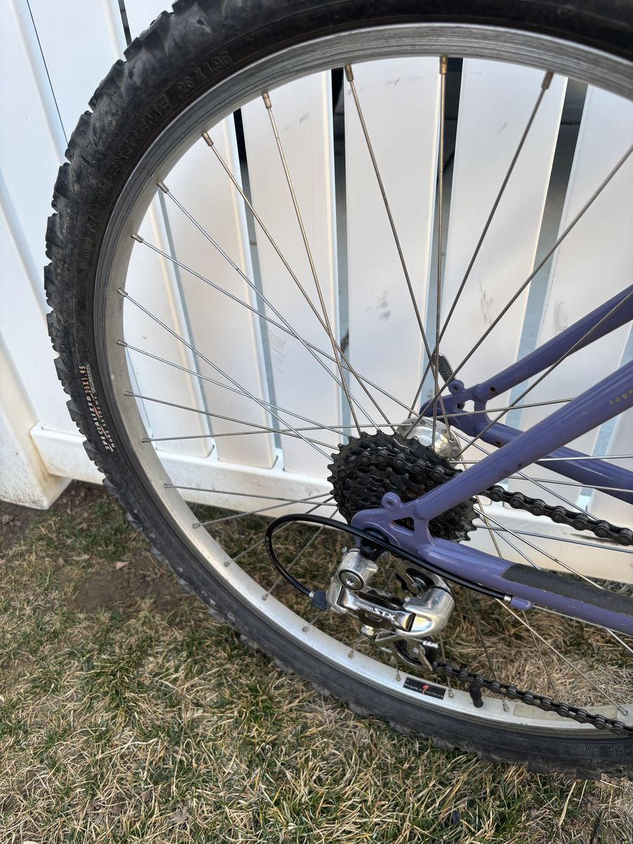 VenmoMedium, 18 in steel frame, 26 in wheels. Recent tuned up and new brake pads. Everything works, ready to ride.