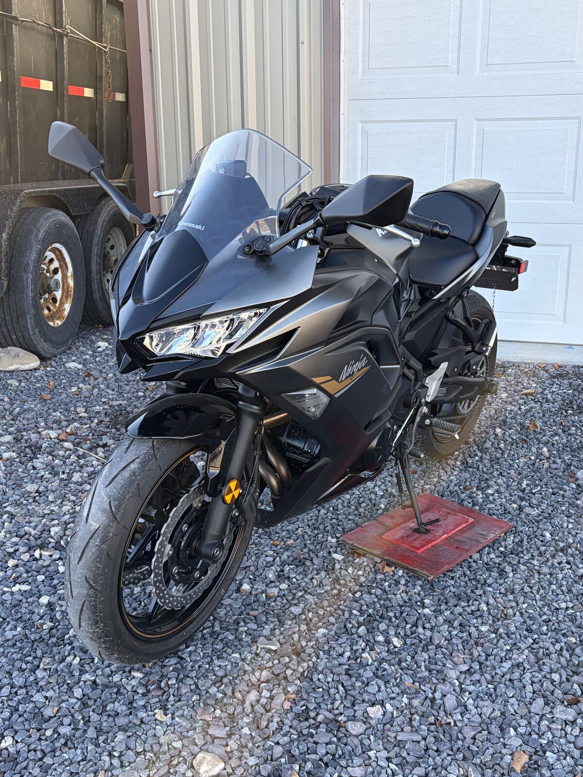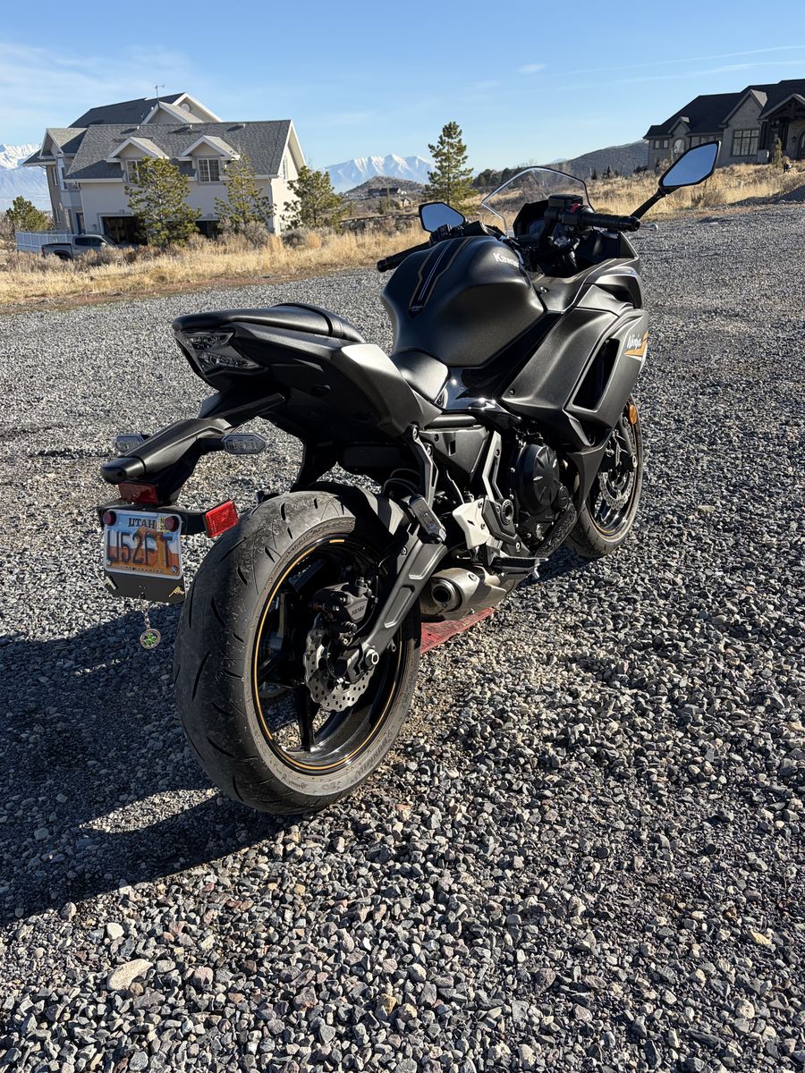 VenmoBeautiful 2023 Kawasaki EX 650 Ninja Bike 1,324 miles. Charcoal Gray with Gold accents. Body style Sport Model. Helmet included.