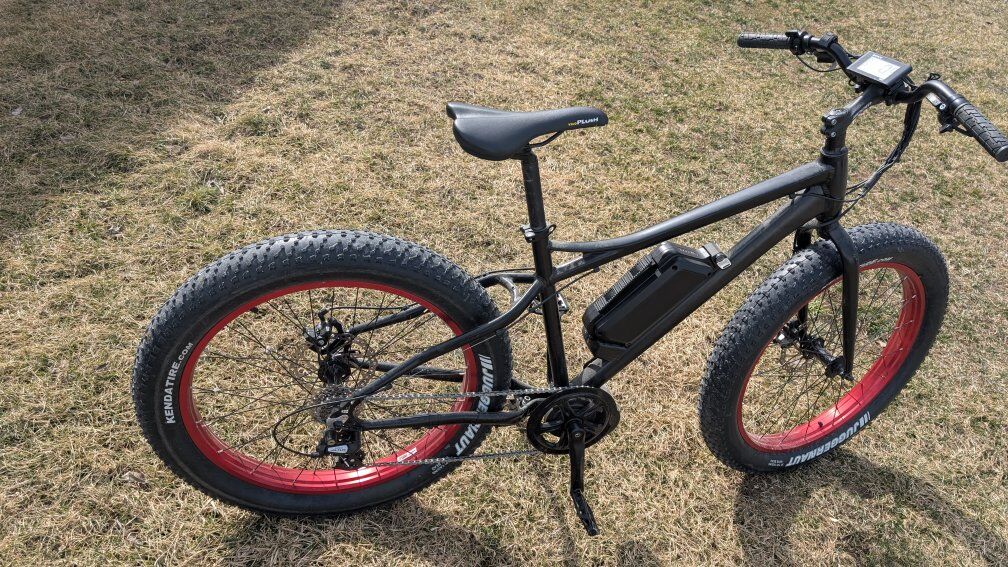 Bafang Electric Bicycle with fat tires, fat bike. Uses Bafang's interchangeable crank drive system. Used very little (maybe 3 short rides now). Charger was lost so I modified it to use a different charger and it works great.