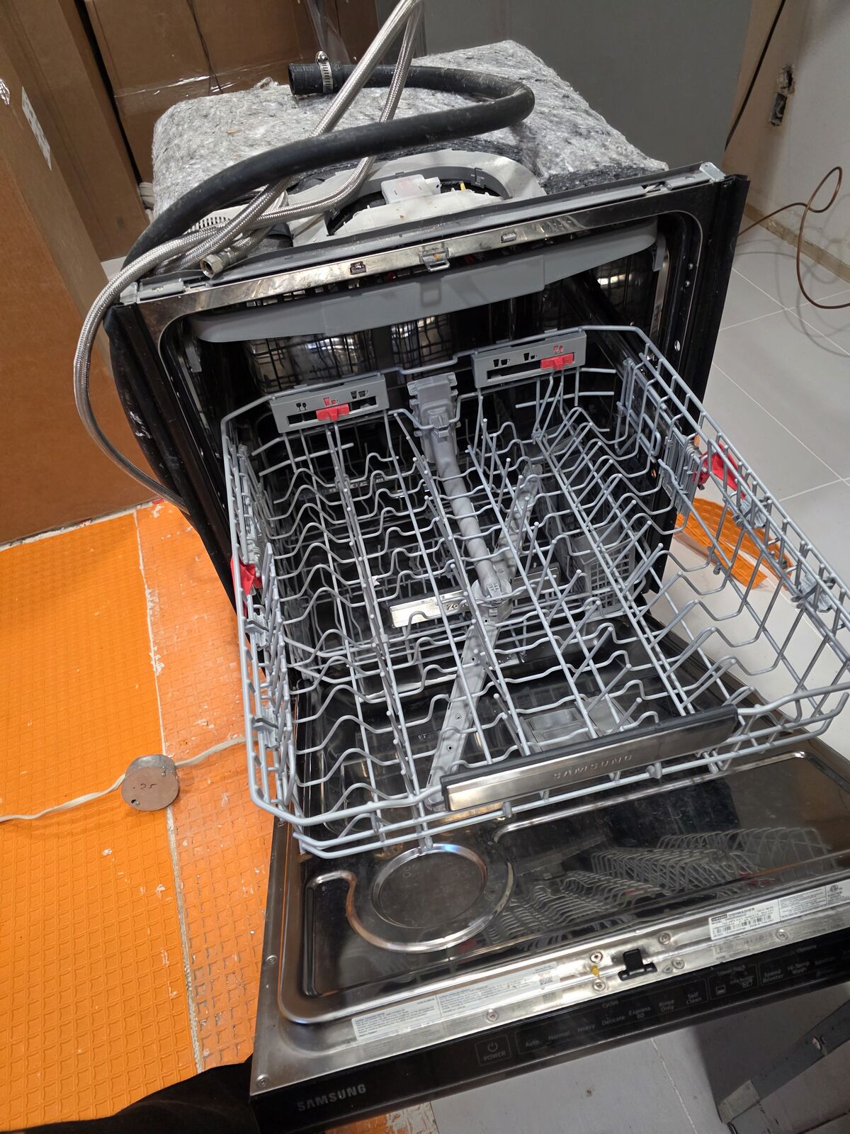 The Samsung DW80R9950UG is a 24-inch, ENERGY STAR-certified, fully integrated built-in smart dishwasher in Fingerprint Resistant Black Stainless Steel. It features a 39 dBA quiet wash cycle, AquaBlast™ linear spray jets, a 15-place setting capacity with a flexible 3rd rack, and an AutoRelease™ door for improved drying.