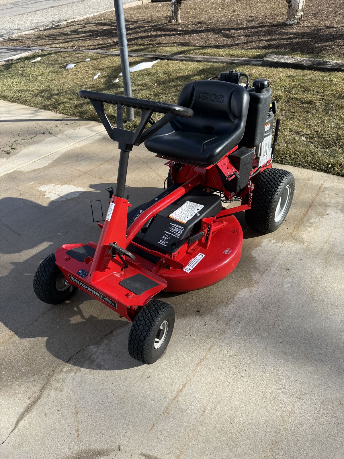 Snapper 28” riding lawnmower. Very low usage, maybe 24 total mows. Only selling because we are getting ready to move into 55 older housing.$700.00